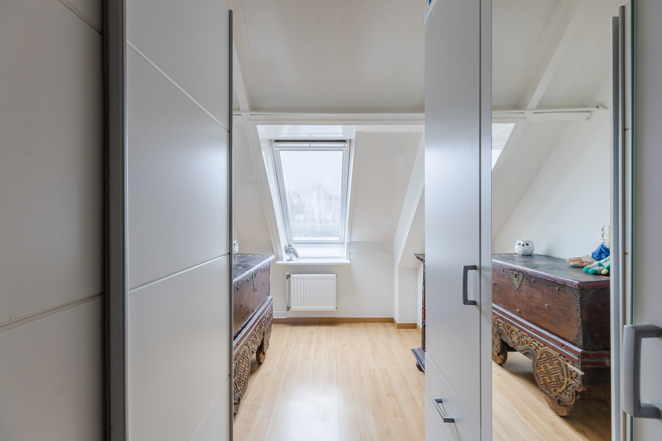 Via de vaste trap op de eerste verdieping bereiken we de overloop van de tweede verdieping met volwaardige 4e slaapkamer. Op deze etage vinden we tevens de aansluitingen voor de witgoedopstelling.