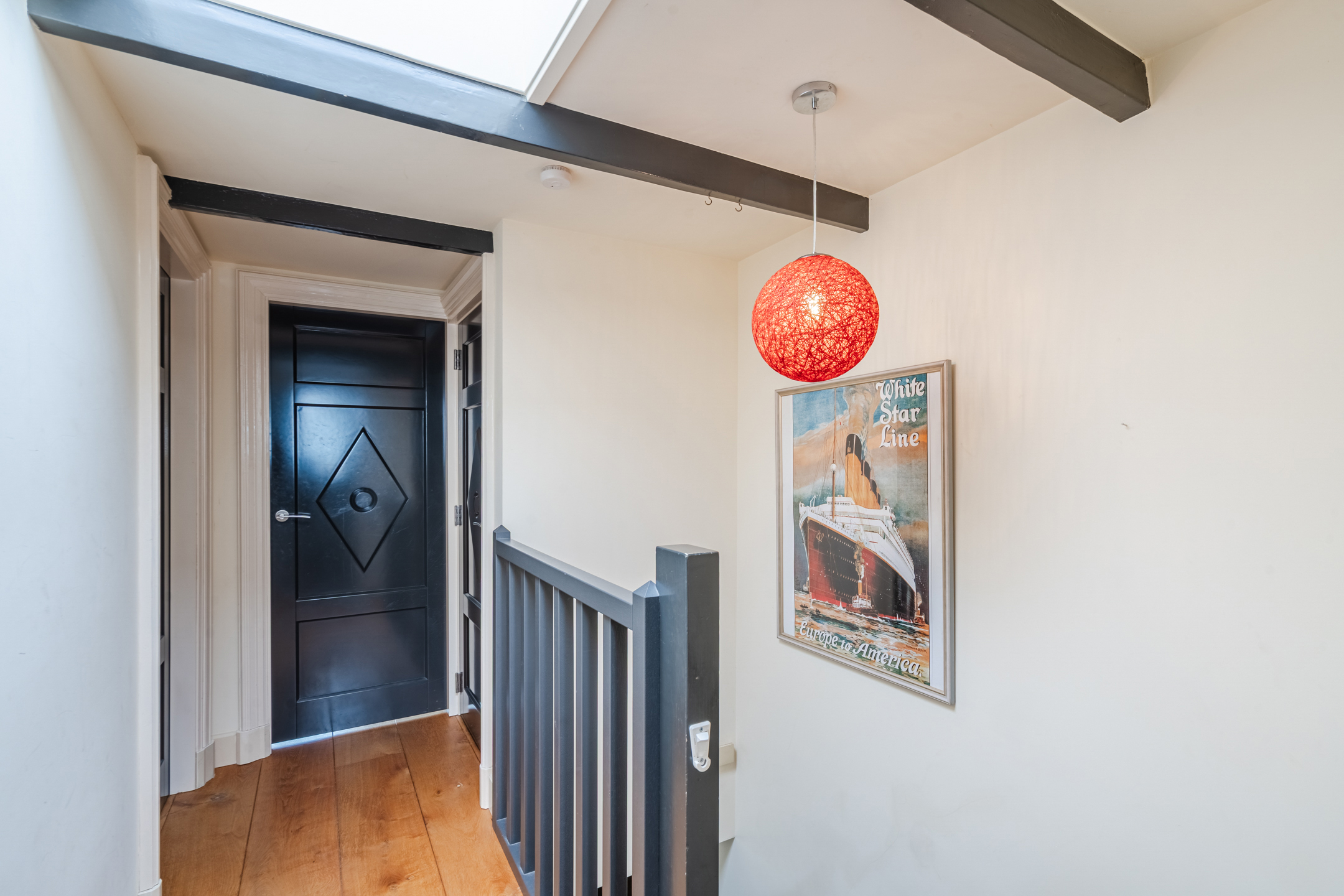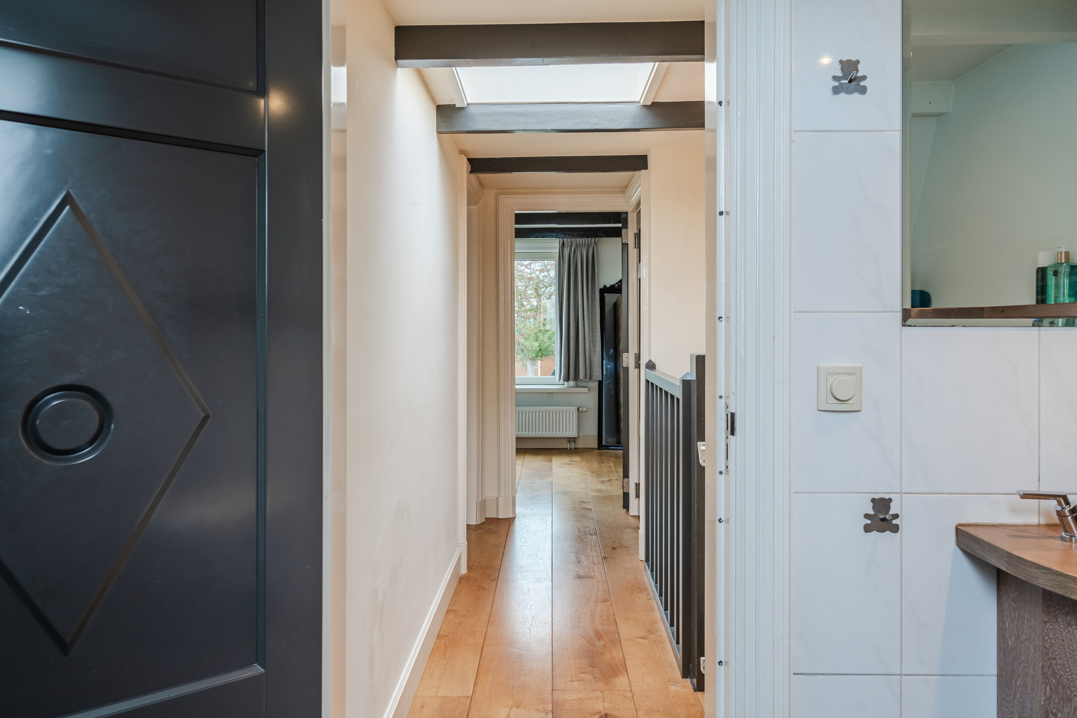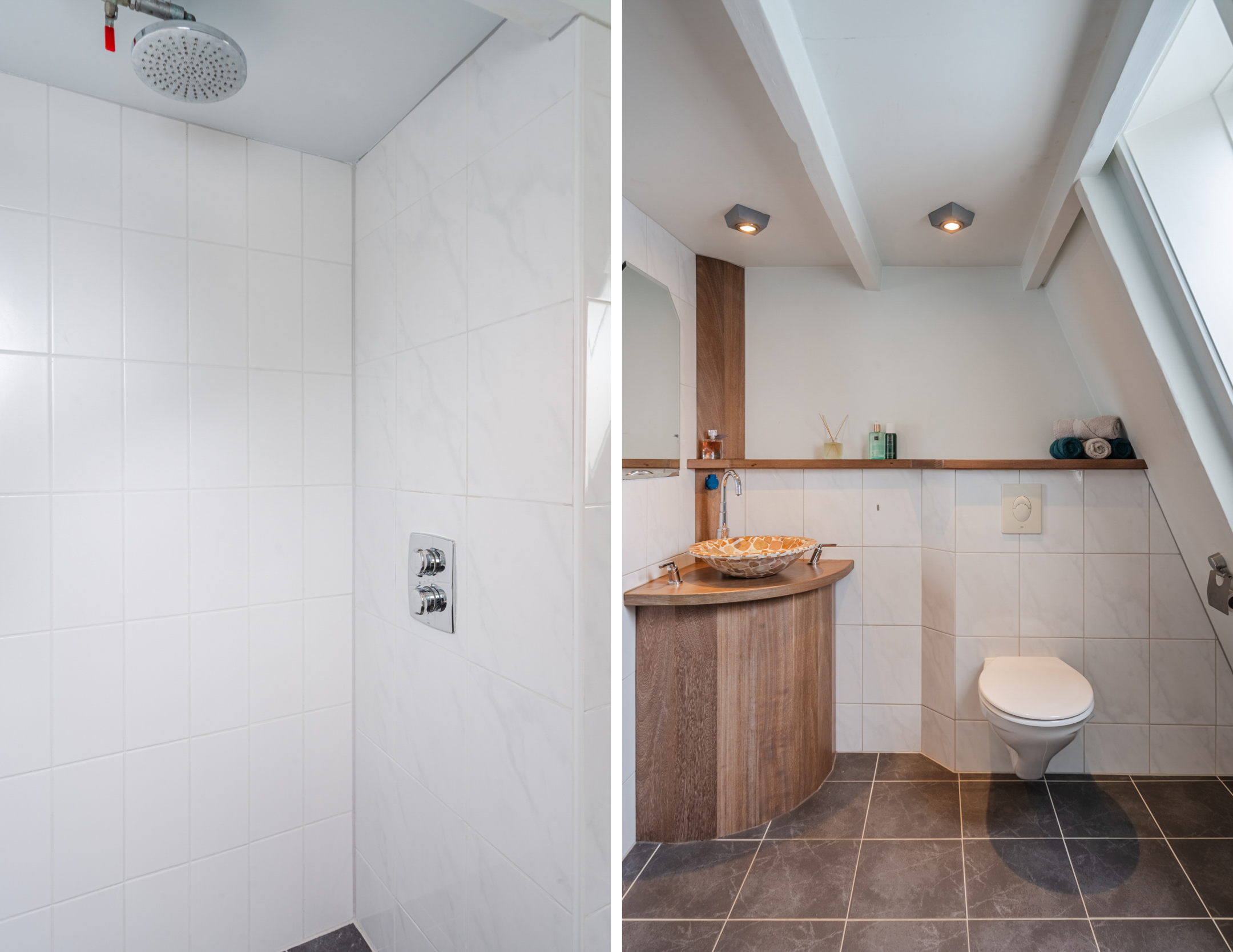 Via de vaste trap bereikt u de overloop met een dakraam dat zorgt voor veel lichtinval. De ruime slaapkamer aan de voorzijde is afgewerkt met houten vloeren, gestucte wanden en zichtbare balken die zorgen voor extra karakter. Dankzij het triple glas is het hier heerlijk stil en comfortabel. De tweede kamer is uitstekend geschikt als extra slaapkamer, werkkamer of inloopkast.