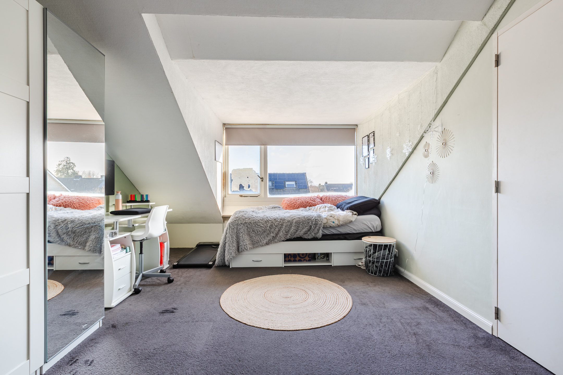 Vanaf de overloop is er toegang tot 2 slaapkamers, de wasruimte en de luxe badkamer. Beide slaapkamers zijn van een goed formaat en netjes afgewerkt met een laminaatvloer. De nieuwe badkamer is slechts 2 weken geleden opgeleverd en voorzien van inbouwspots, een tweede toilet, dubbele wastafel met meubel, ligbad en een aparte inloopregendouche.