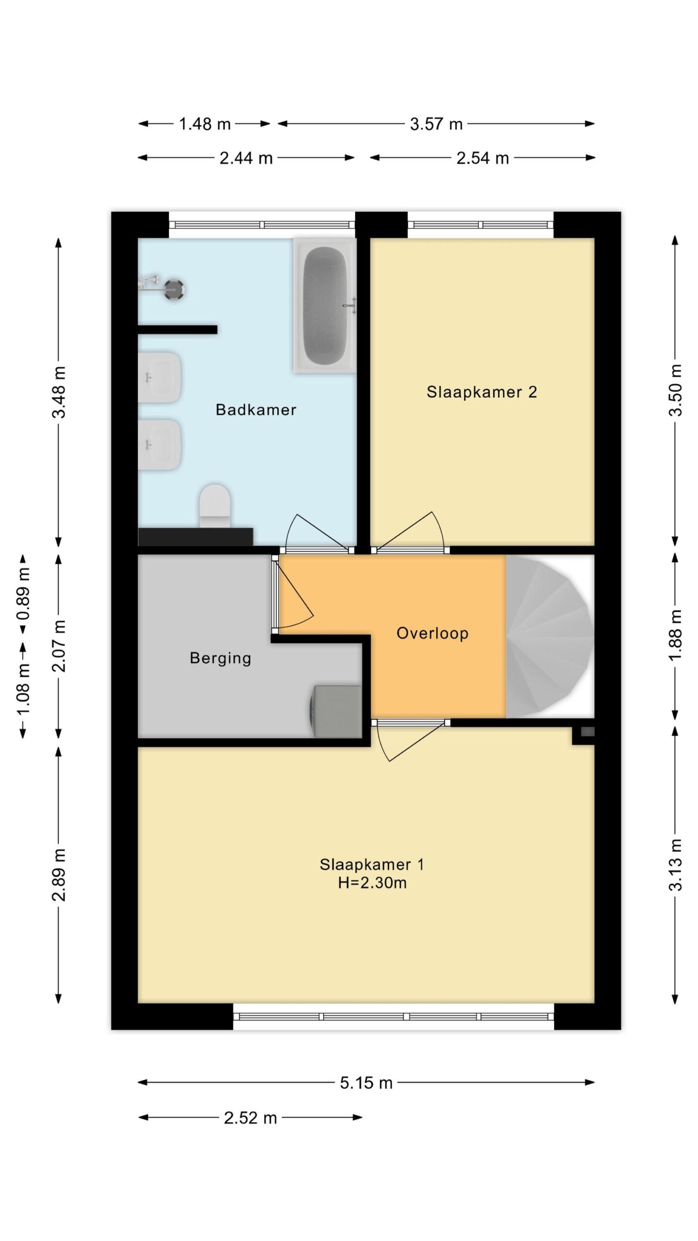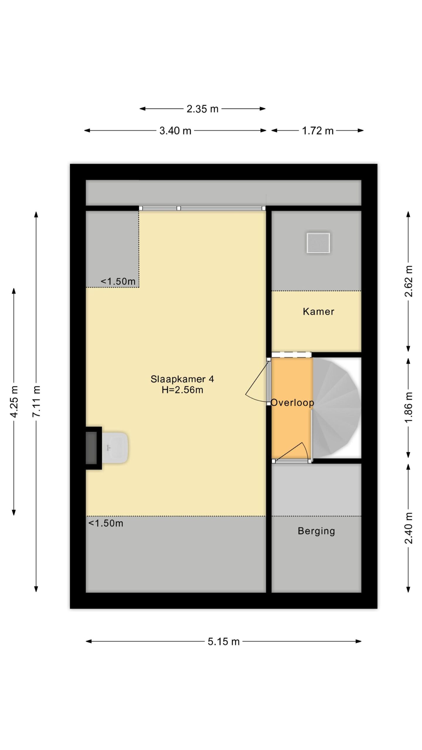 Via the fixed staircase on the first floor, we reach the landing of the spacious second floor, which provides access to the full-sized 4th bedroom with its own washbasin and a small extra room.