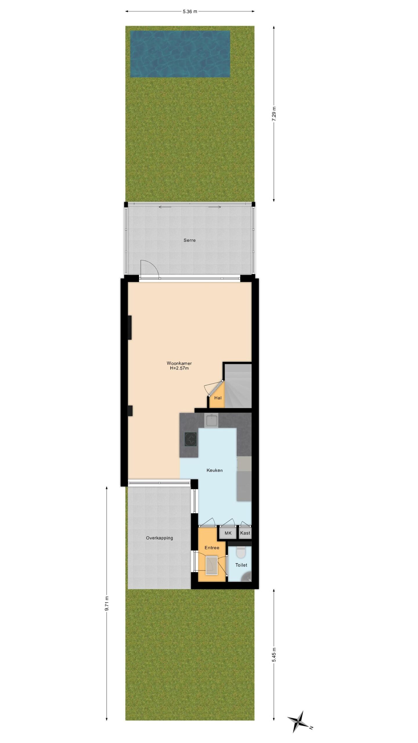⢠Onderhoudsvriendelijke achtertuin op het oosten met luxe serre en verwarmd zwembad
