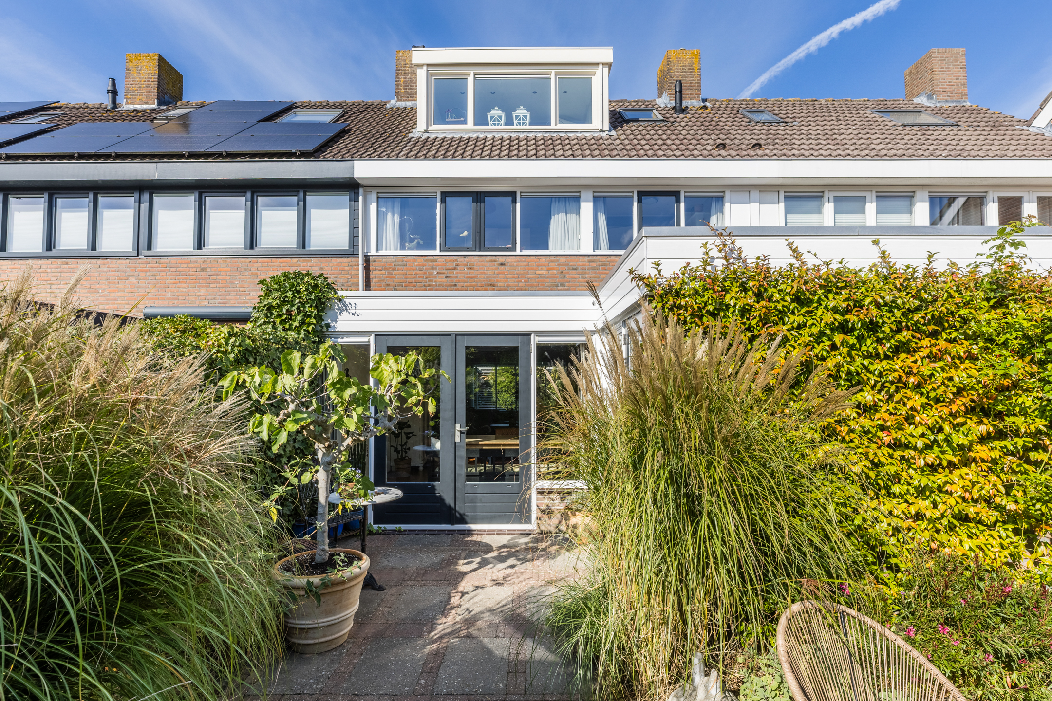 De groene achtertuin is gelegen op het zuiden en geniet hierdoor optimaal van de zon.