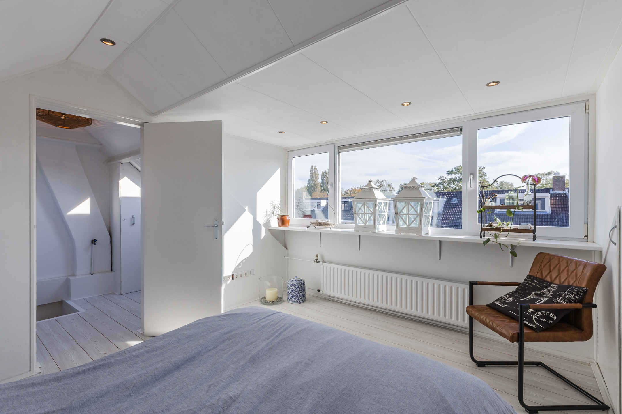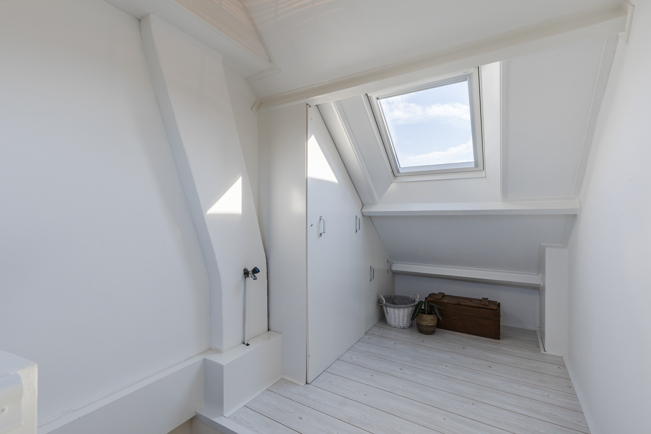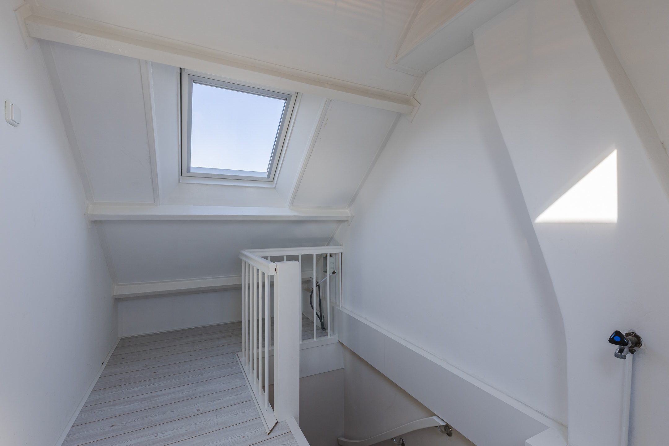 Via de vaste trap op de eerste verdieping, bereiken we de overloop van de ruime tweede verdieping die toegang biedt tot de volwaardige 4e slaapkamer. Door de toevoeging van een dakkapel is ook deze kamer heerlijk ruim en licht. Bovendien is er veel bergruimte achter knieschotten onder het schuine dak aanwezig.