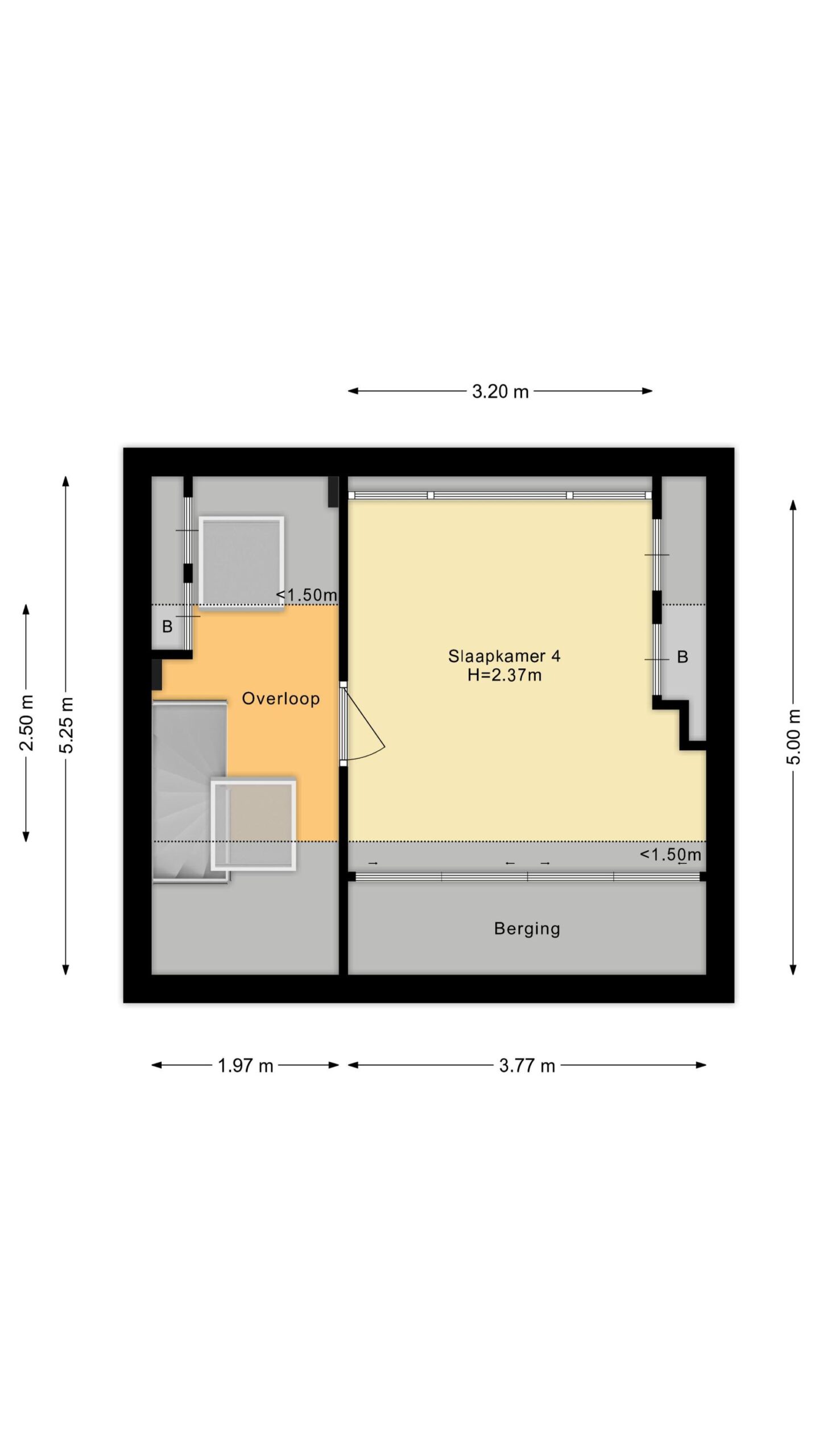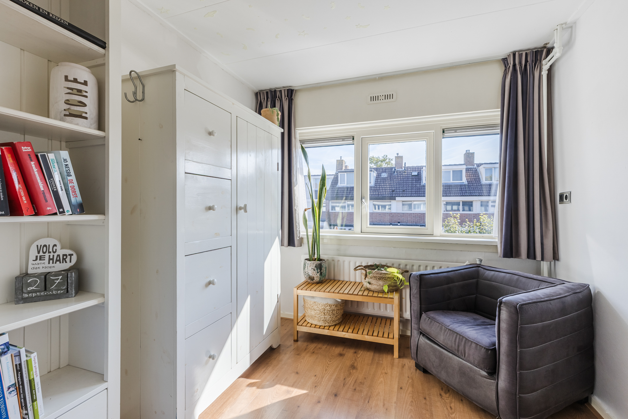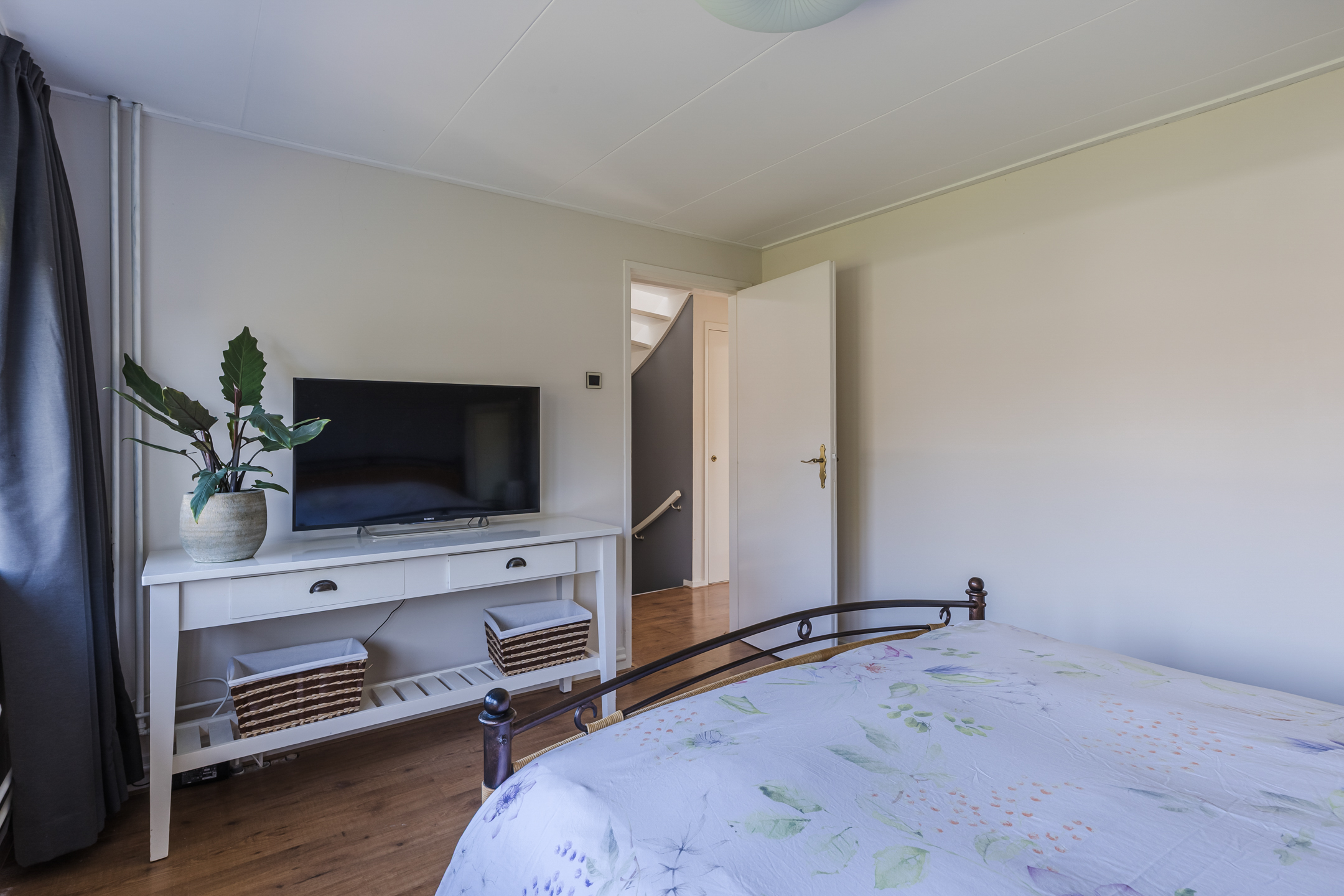 Via de vaste trap op de eerste verdieping, bereiken we de overloop van de ruime tweede verdieping die toegang biedt tot de volwaardige 4e slaapkamer. Door de toevoeging van een dakkapel is ook deze kamer heerlijk ruim en licht. Bovendien is er veel bergruimte achter knieschotten onder het schuine dak aanwezig.