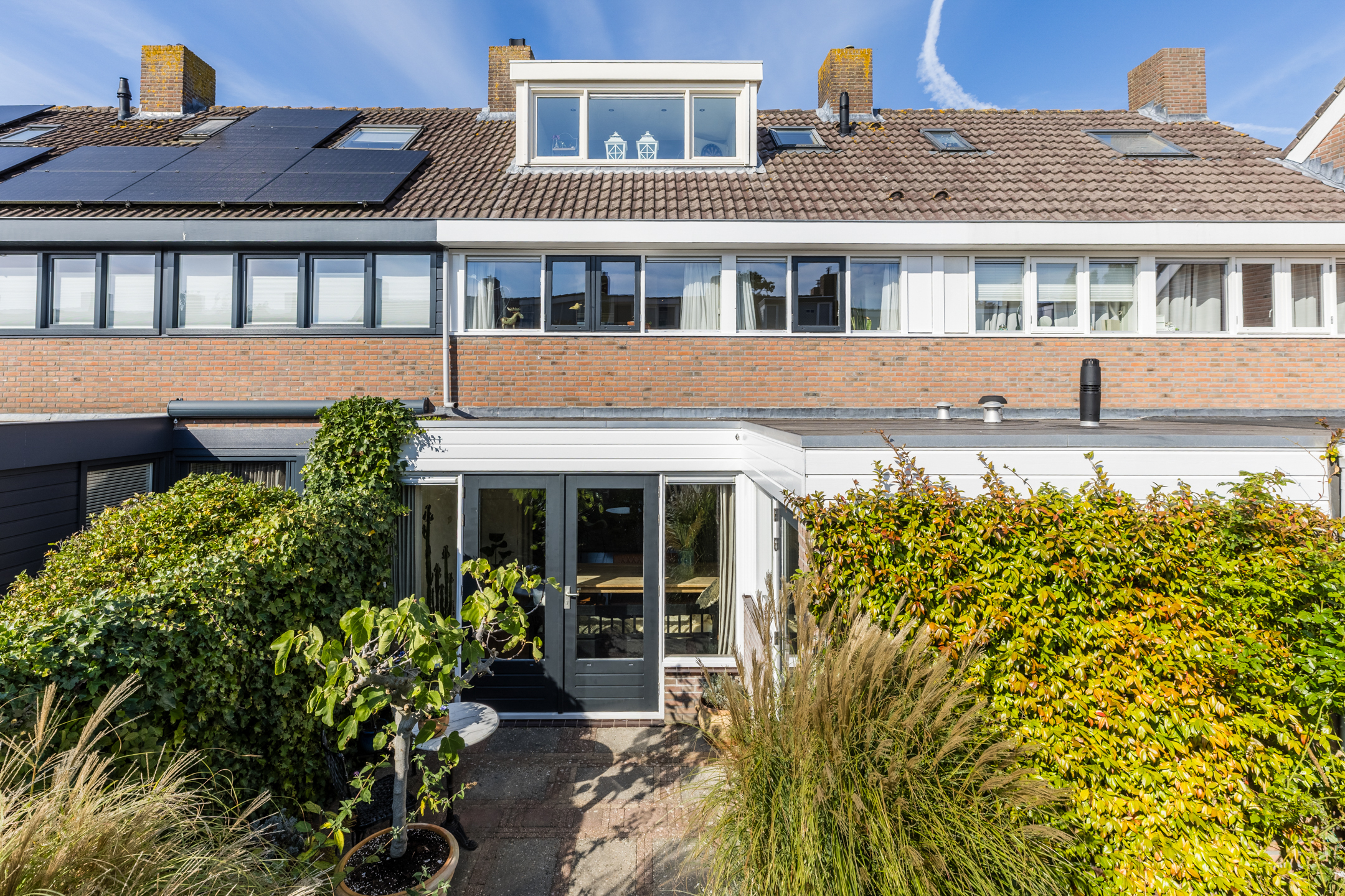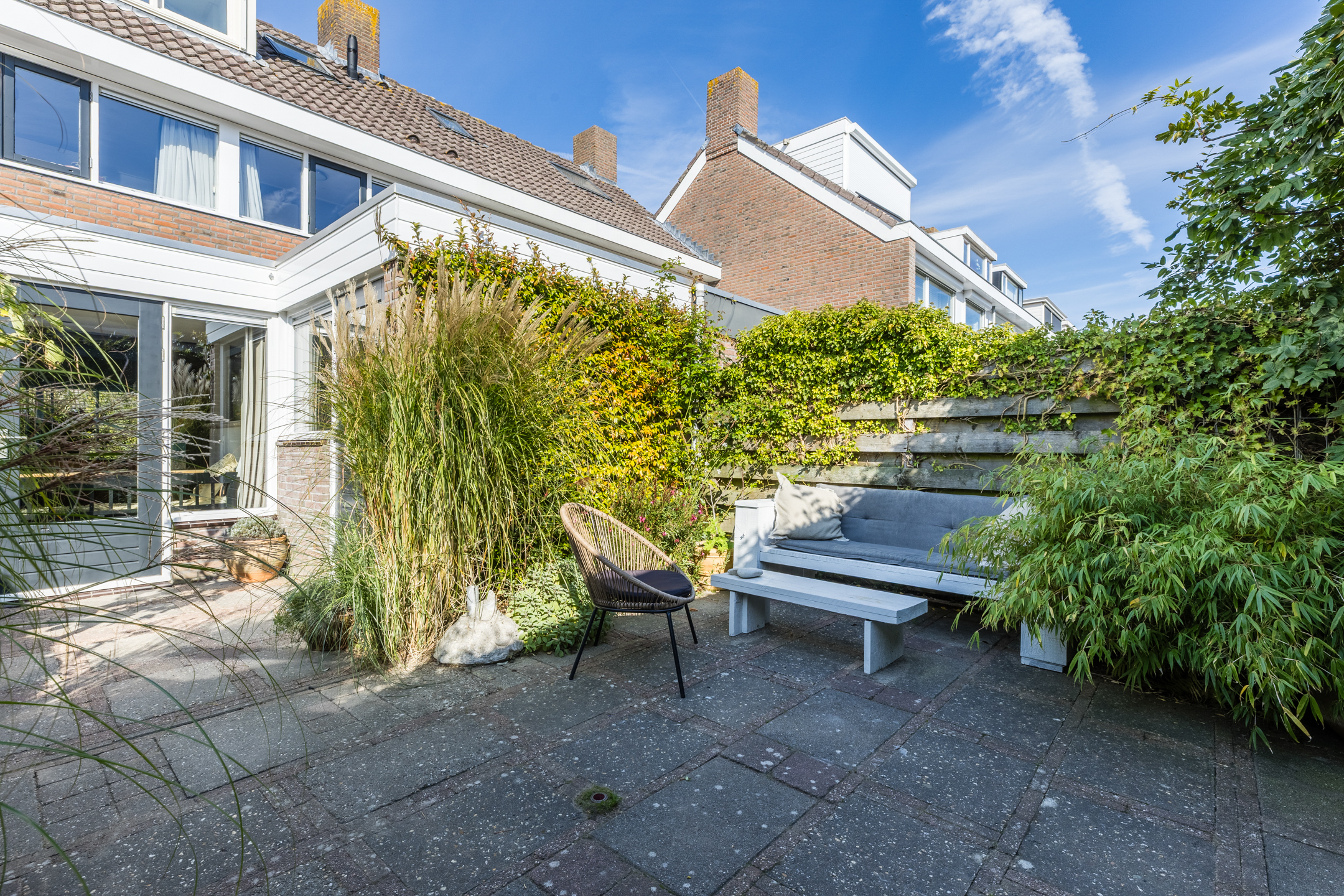 De groene achtertuin is gelegen op het zuiden en geniet hierdoor optimaal van de zon.