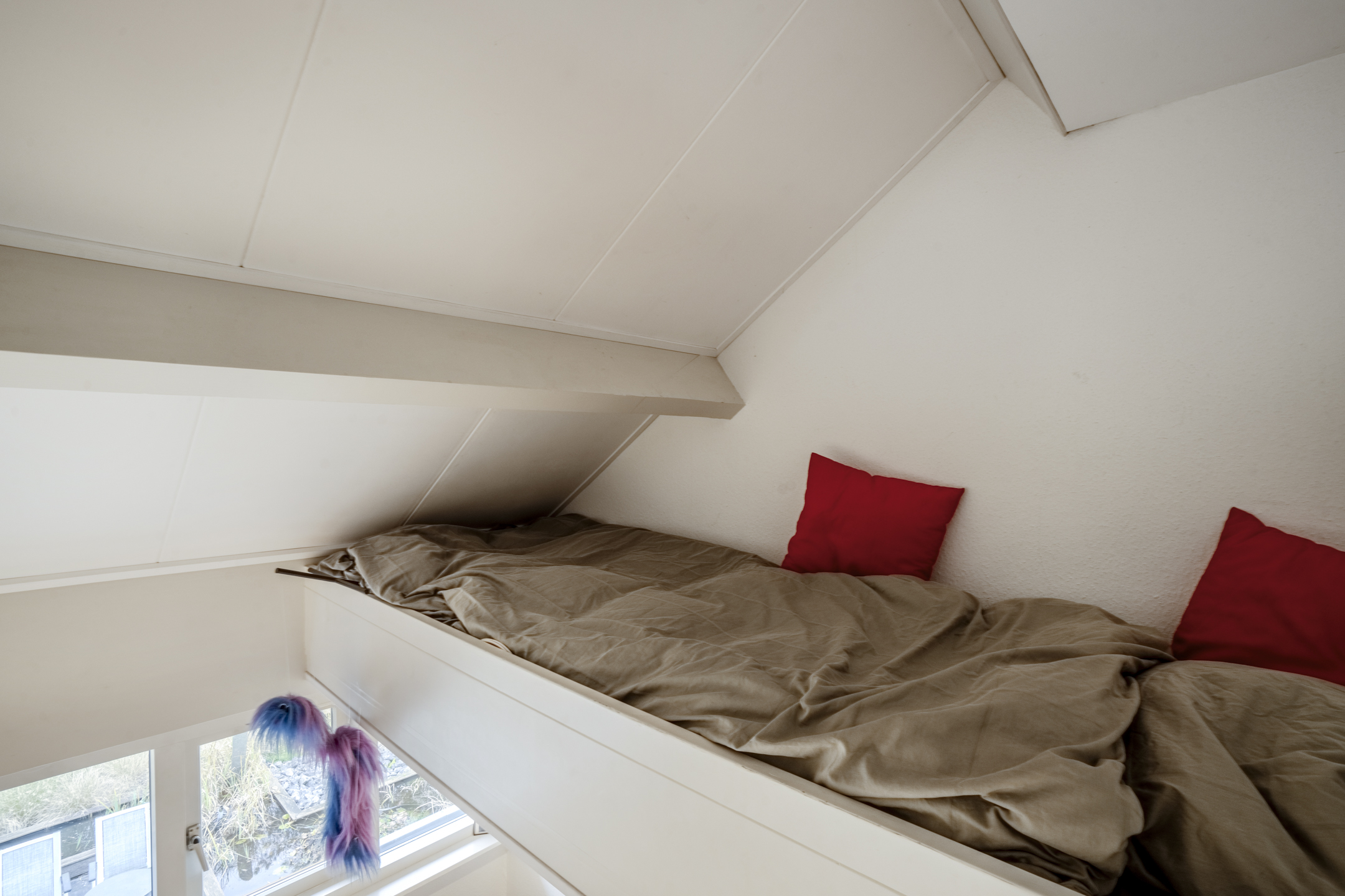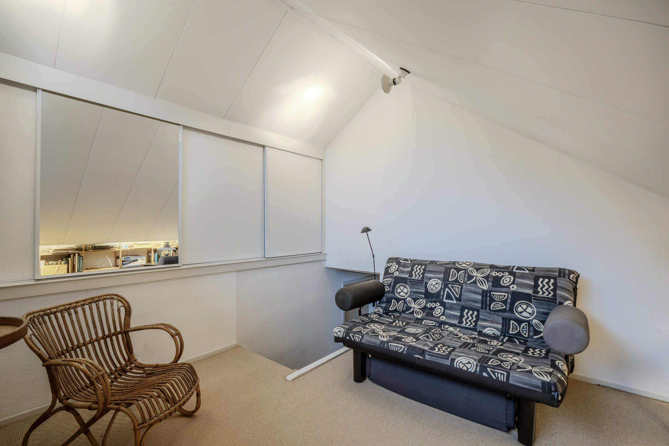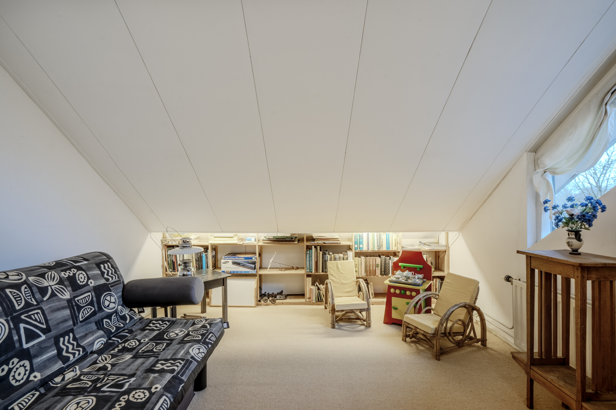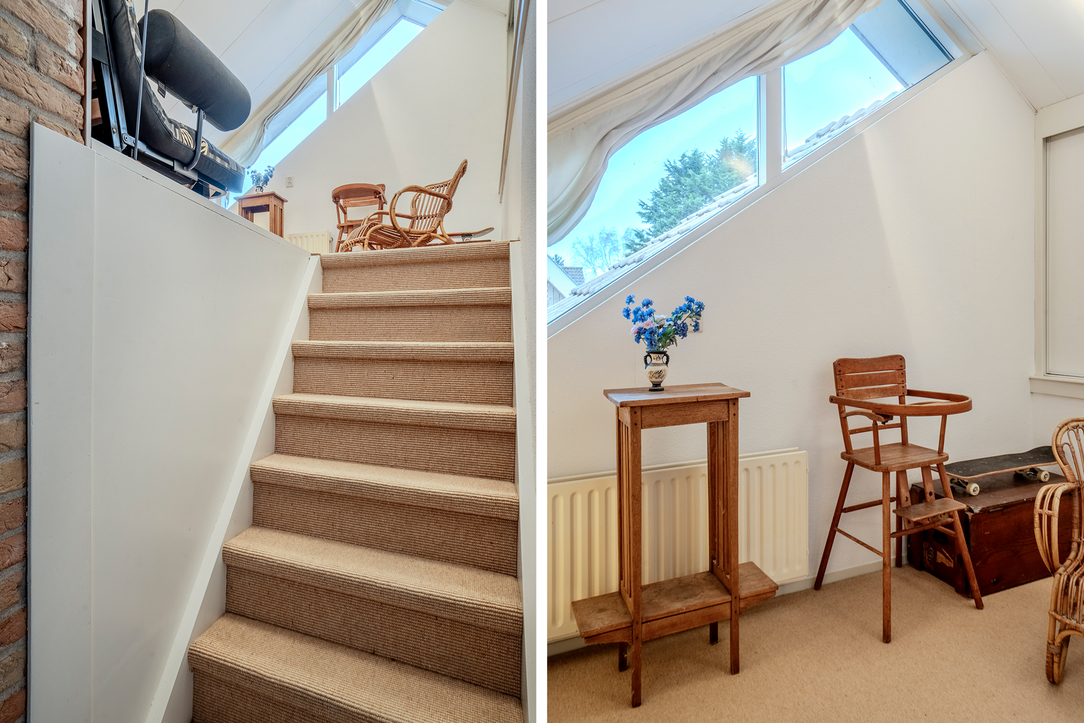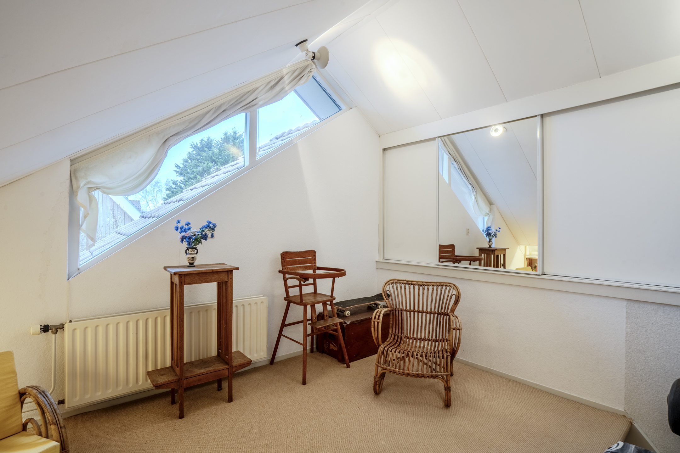 Er is een vaste trap naar de zolderkamer met handige opslagruimte.