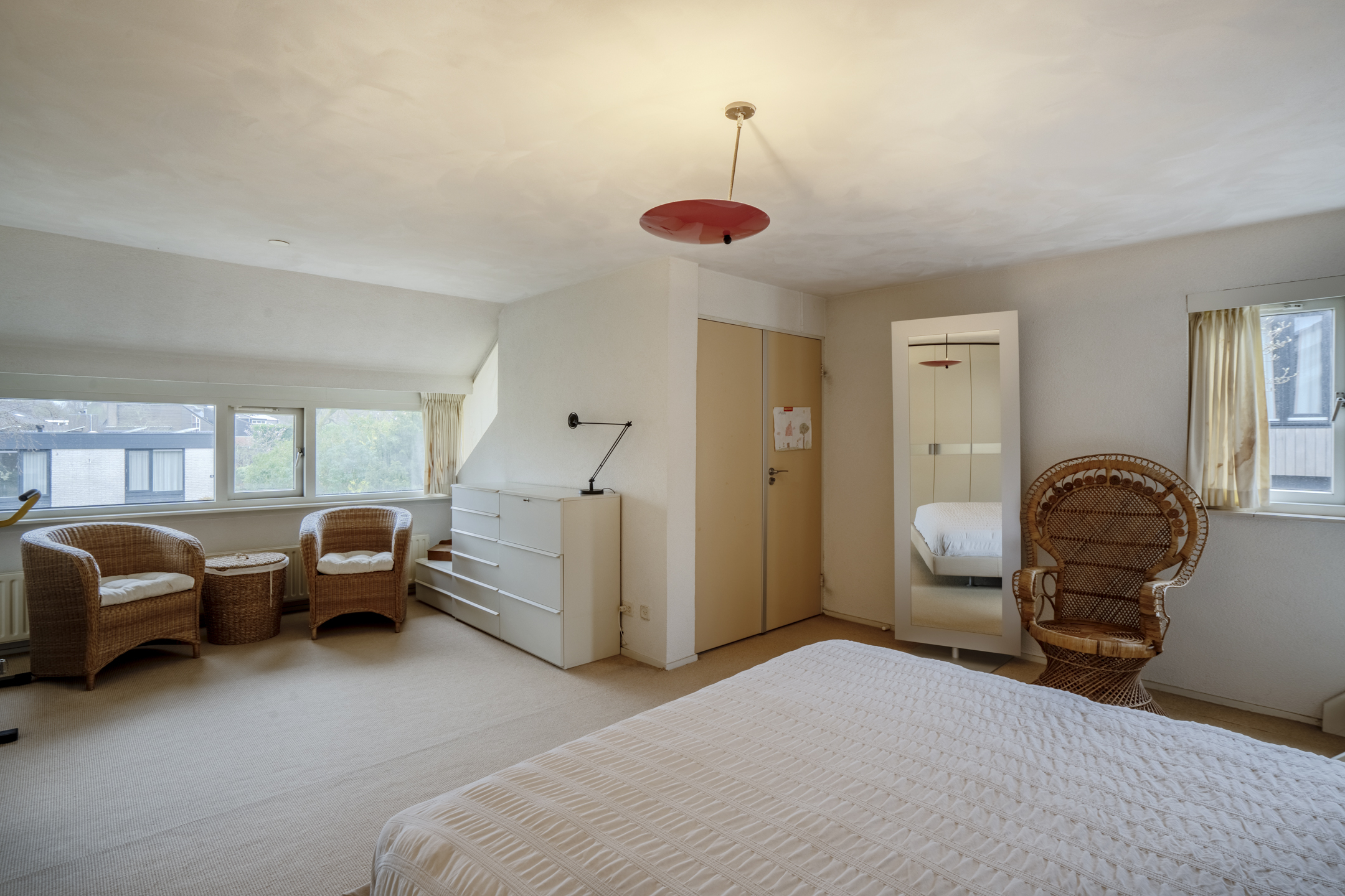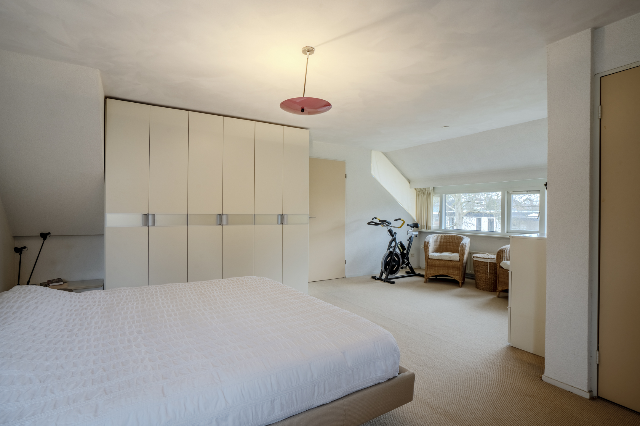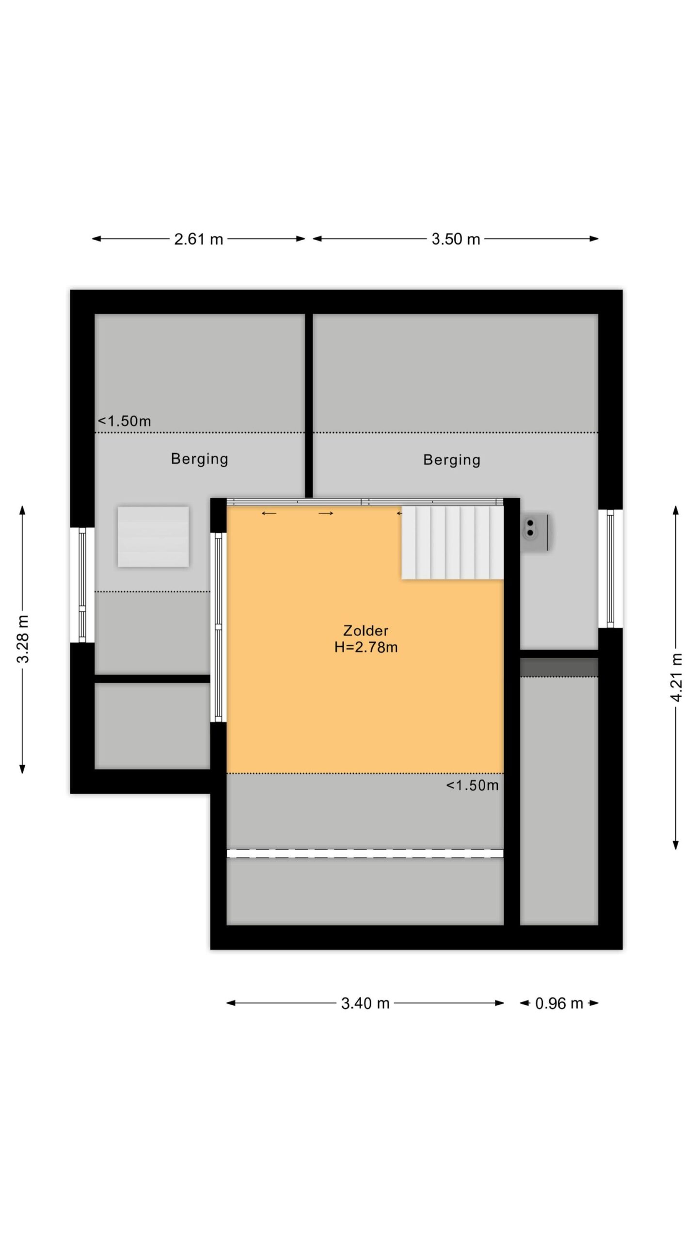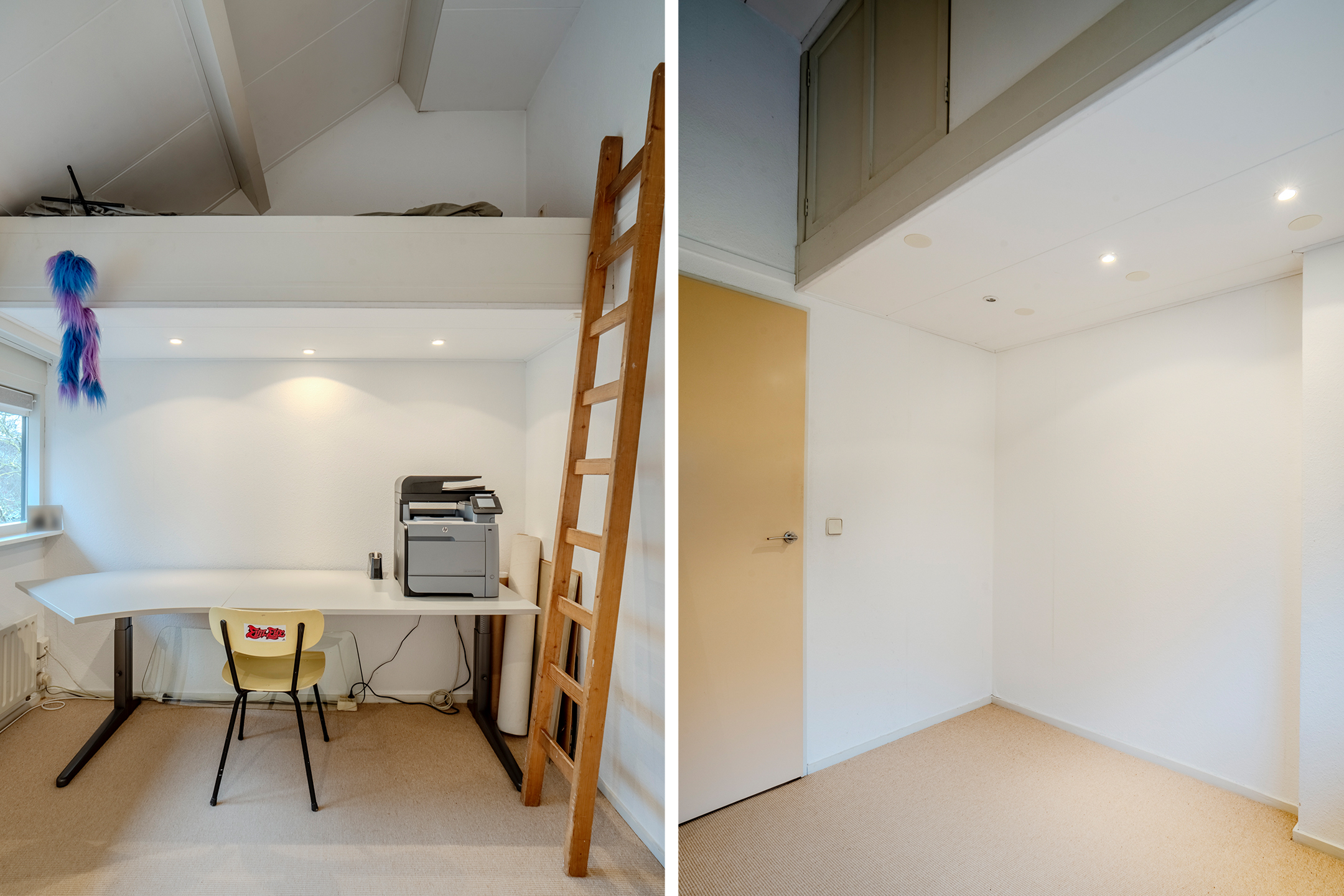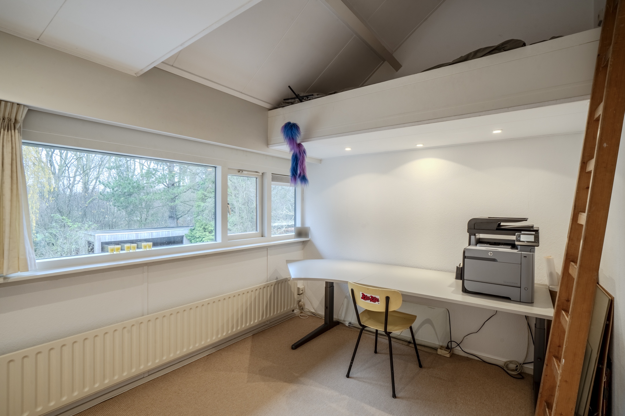 Er is een vaste trap naar de zolderkamer met handige opslagruimte.