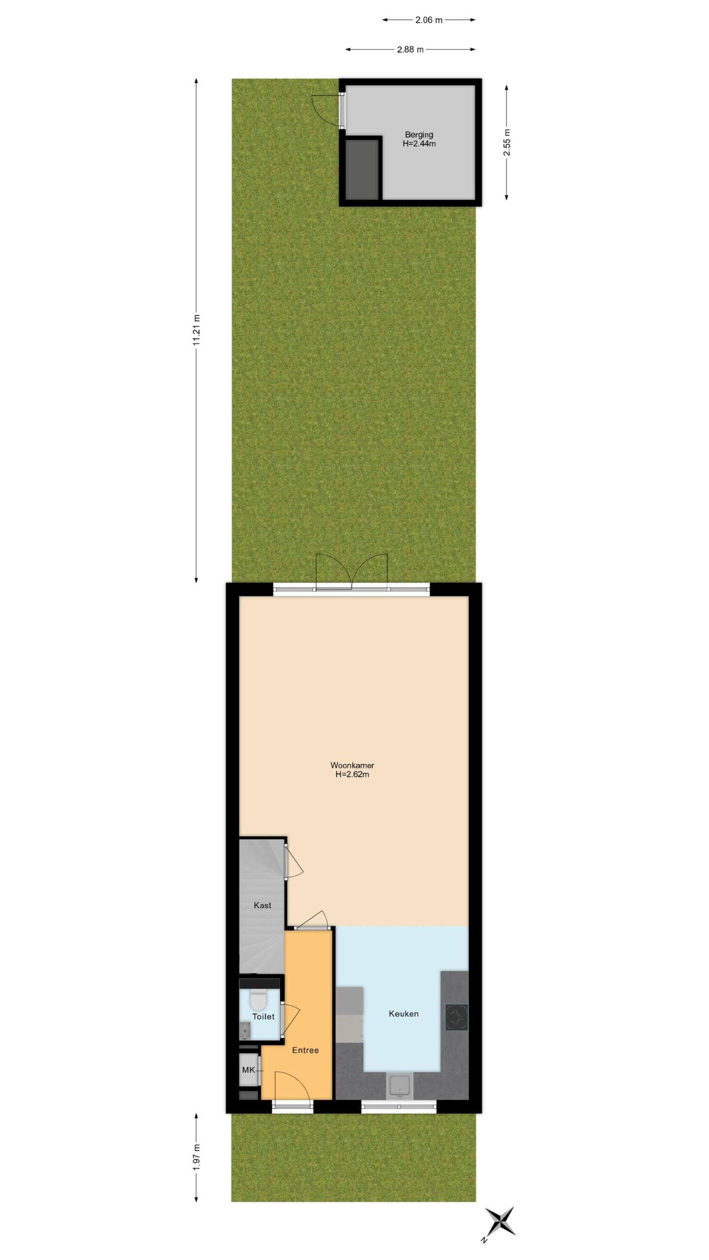 The back garden is located on the southeast and can still be landscaped to your own taste and wishes. At the back of the garden stands a handy wooden shed which is equipped with electricity.