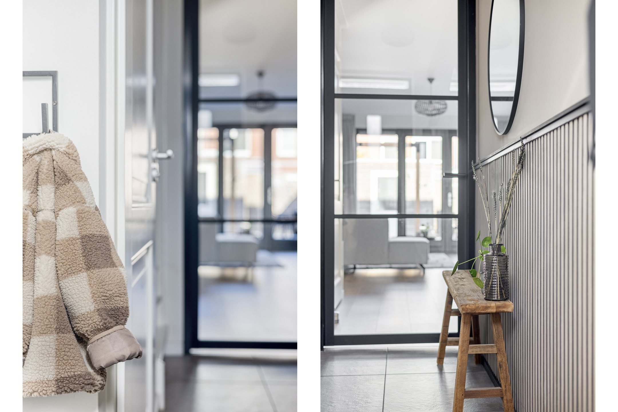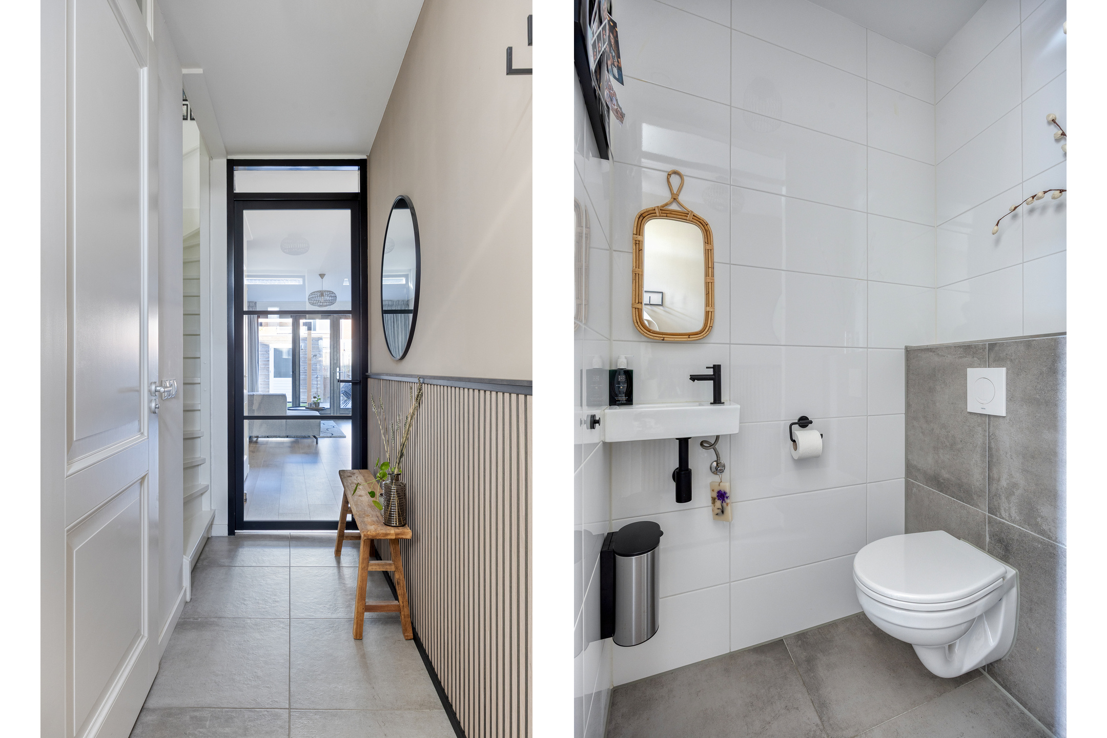 You reach the entrance of the house via the front garden. From here, you have access to the living room, the toilet, and the staircase to the first floor. The hallway serves as a central and practical starting point within the home.