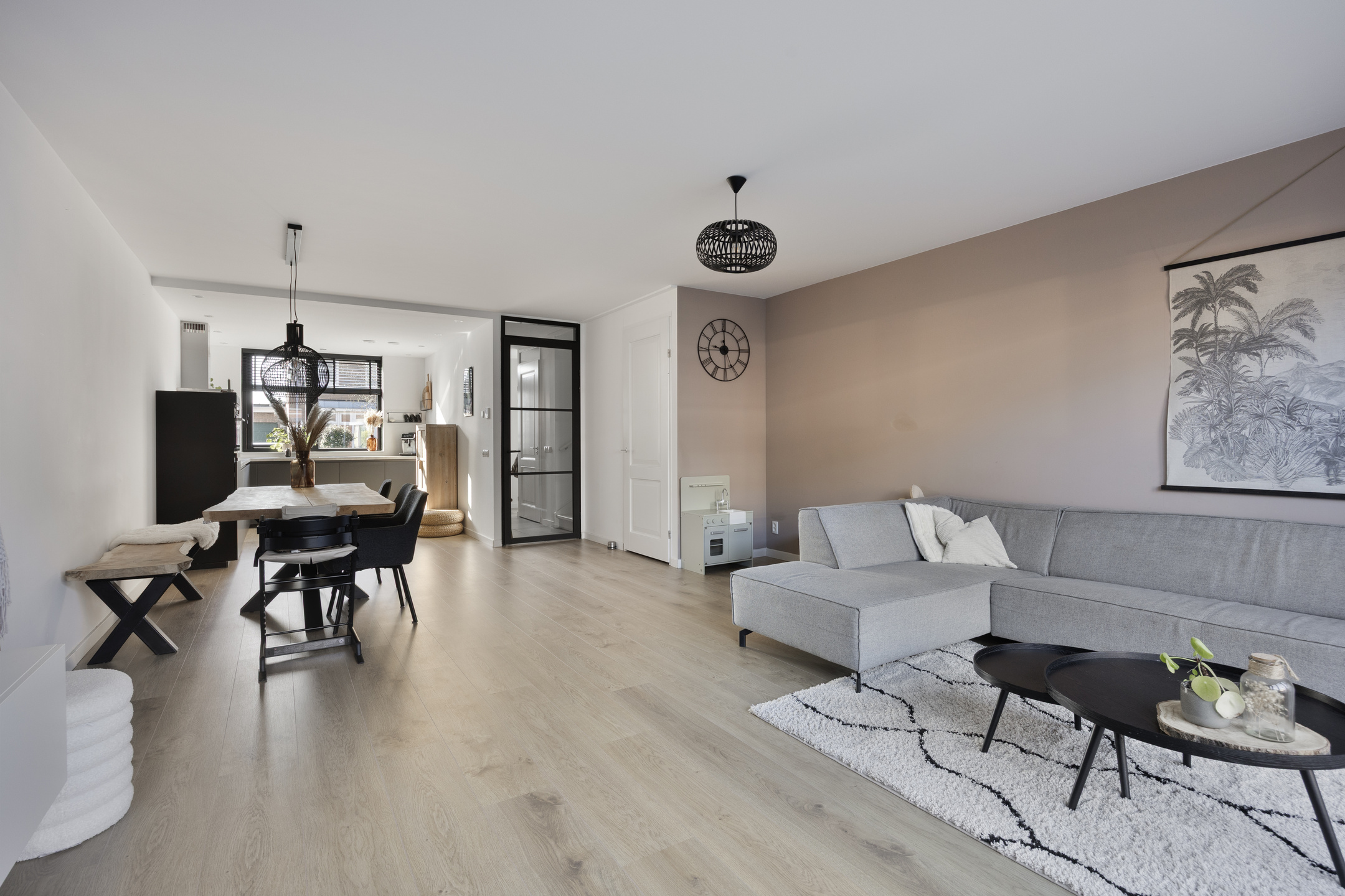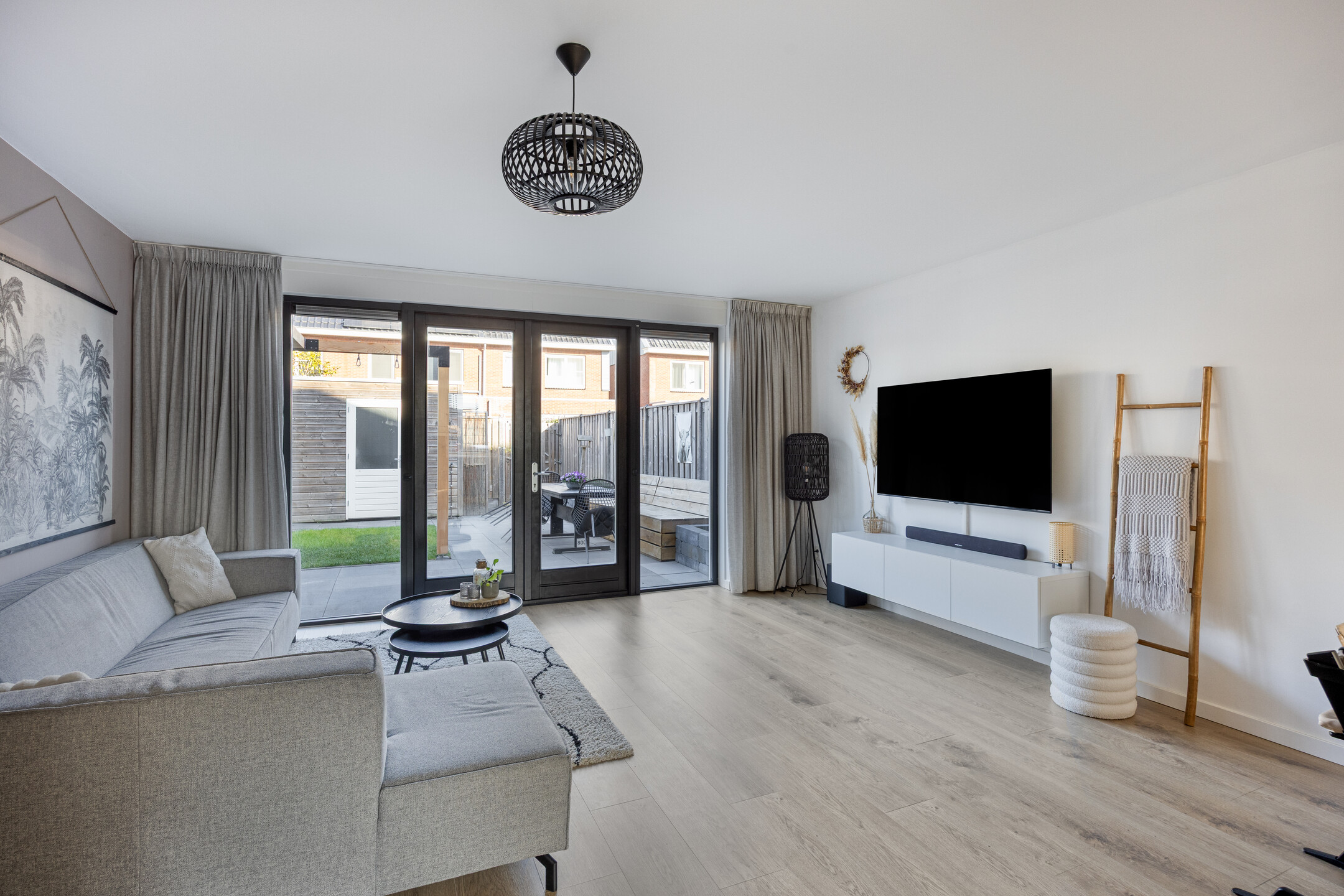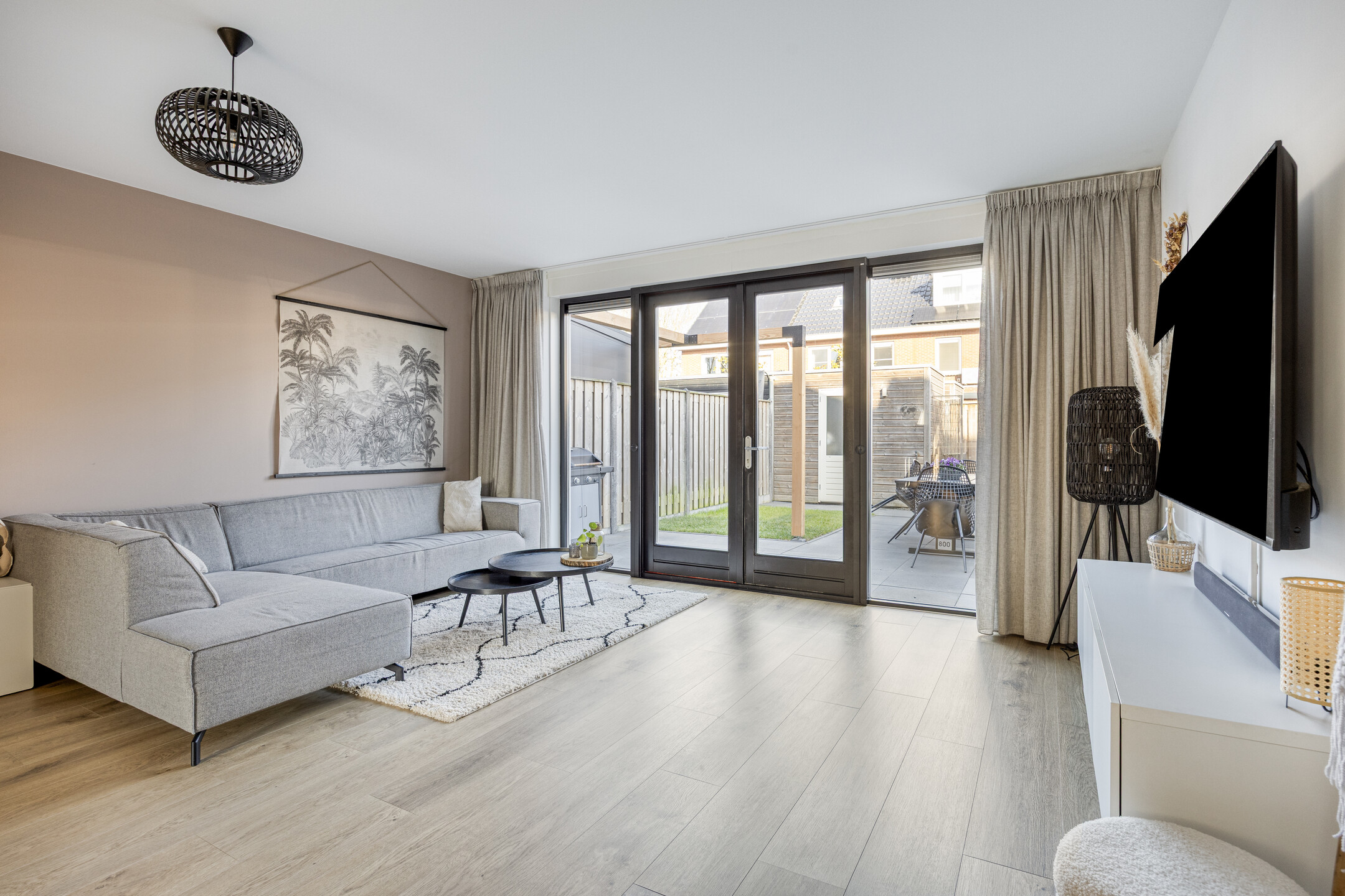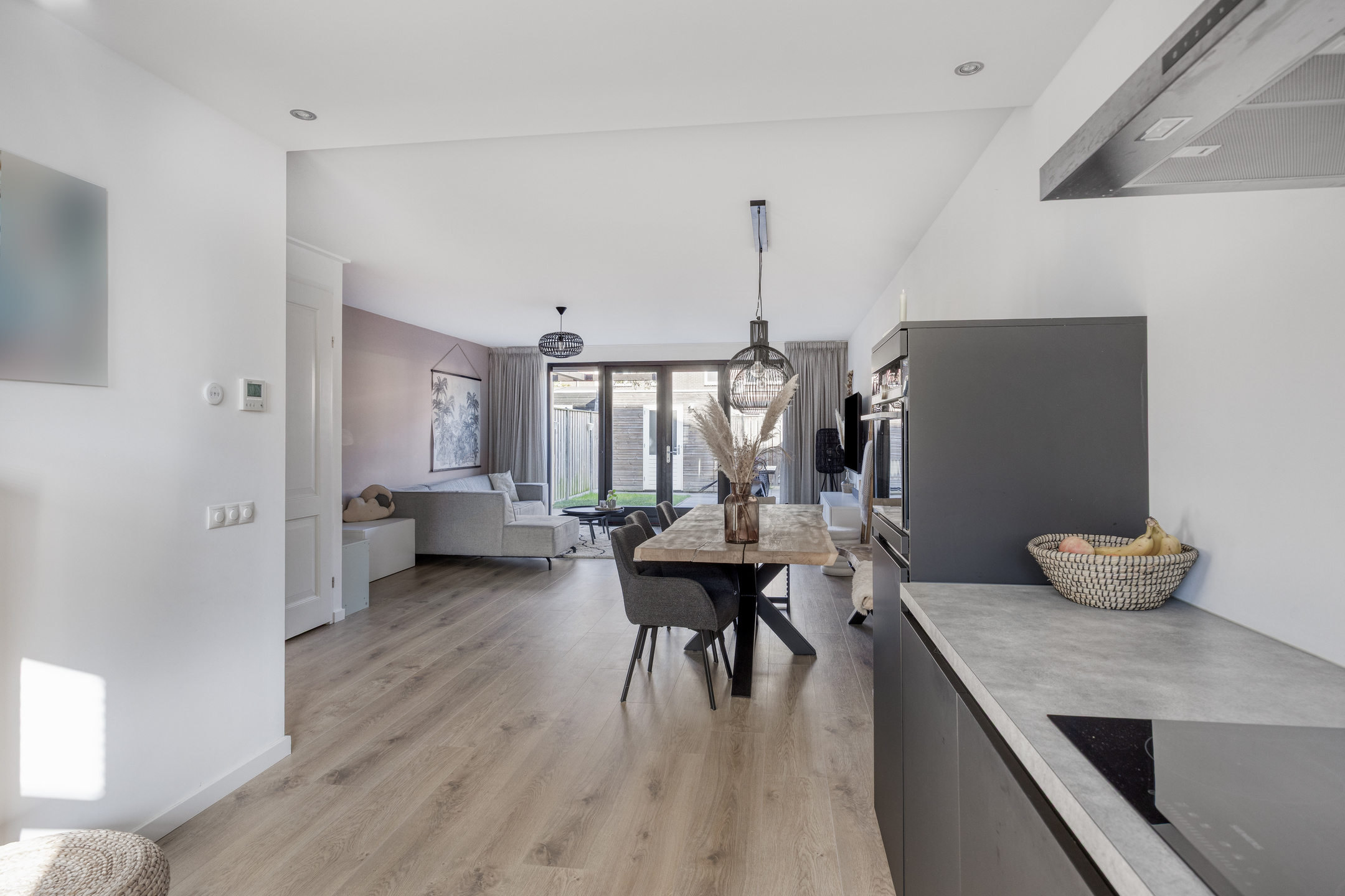 De woonkamer vormt het hart van de begane grond en kenmerkt zich door de open indeling en de prettige lichtinval. Grote ramen en openslaande deuren naar de tuin zorgen voor een ruimtelijk en fris geheel. Hier richt u moeiteloos een comfortabele zithoek en een gezellige eethoek in, perfect voor zowel ontspanning als samenzijn.
