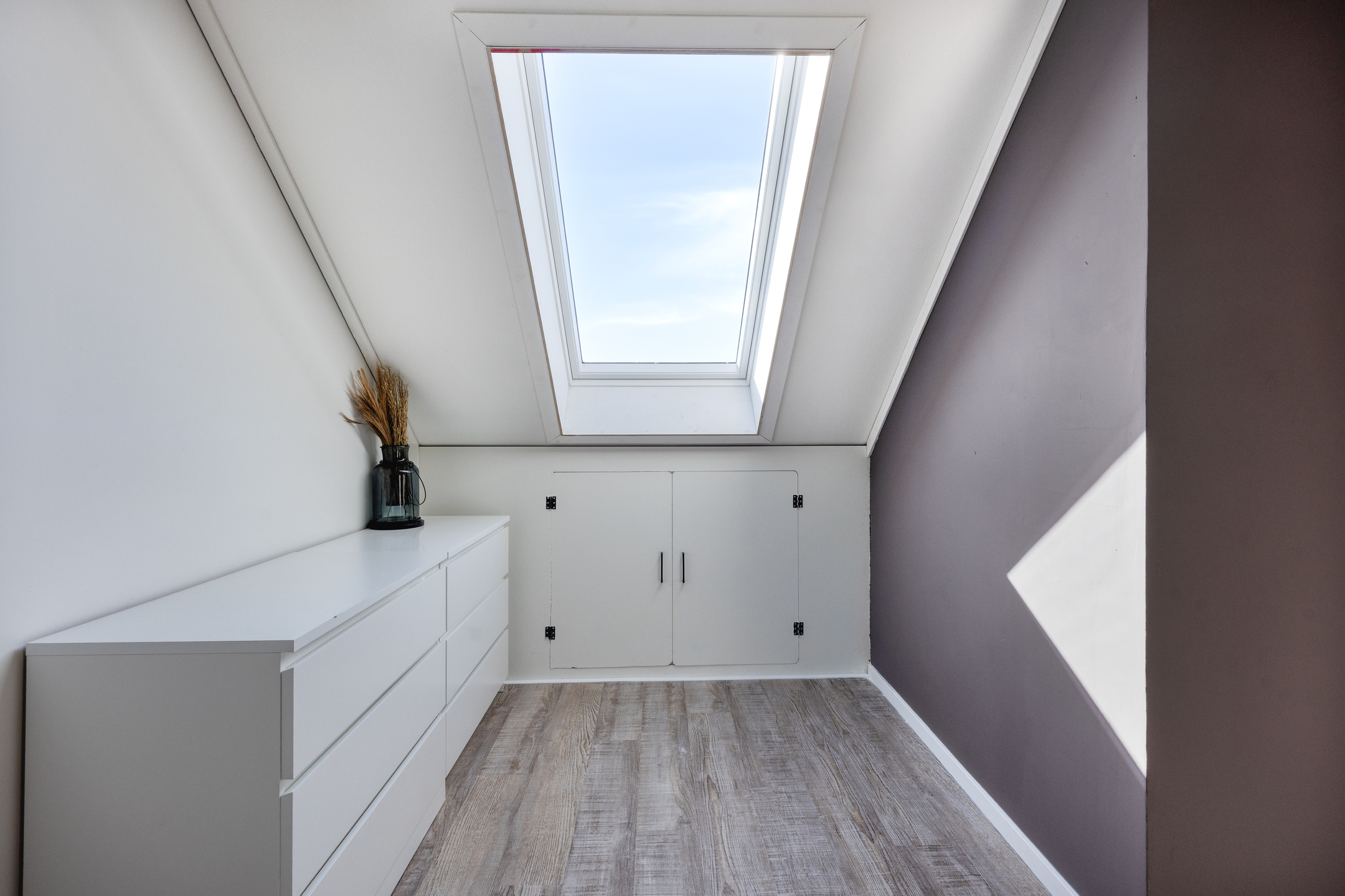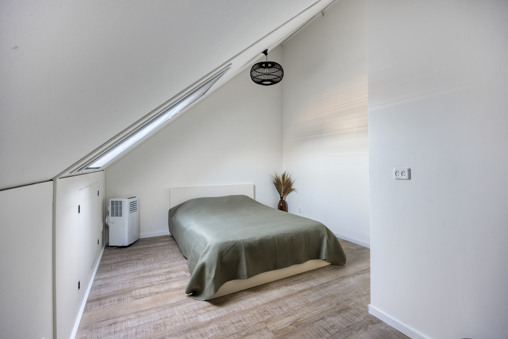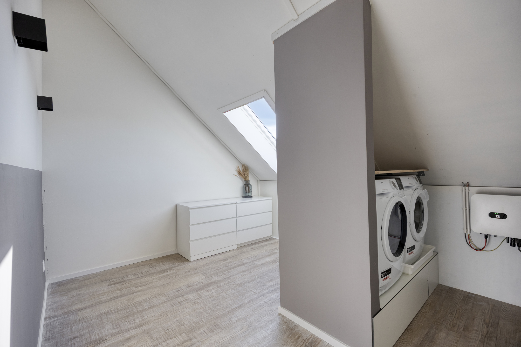 Via a fixed staircase, you reach the second floor. This level consists of a spacious attic and an additional bedroom. Despite the sloping walls, the bedroom is surprisingly spacious and practical. On the landing, you will find the connections for laundry appliances. This floor offers plenty of possibilities, such as an extra bedroom, workspace, or hobby room.