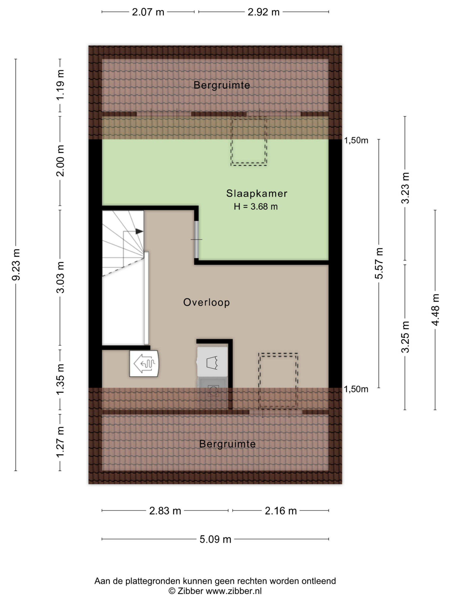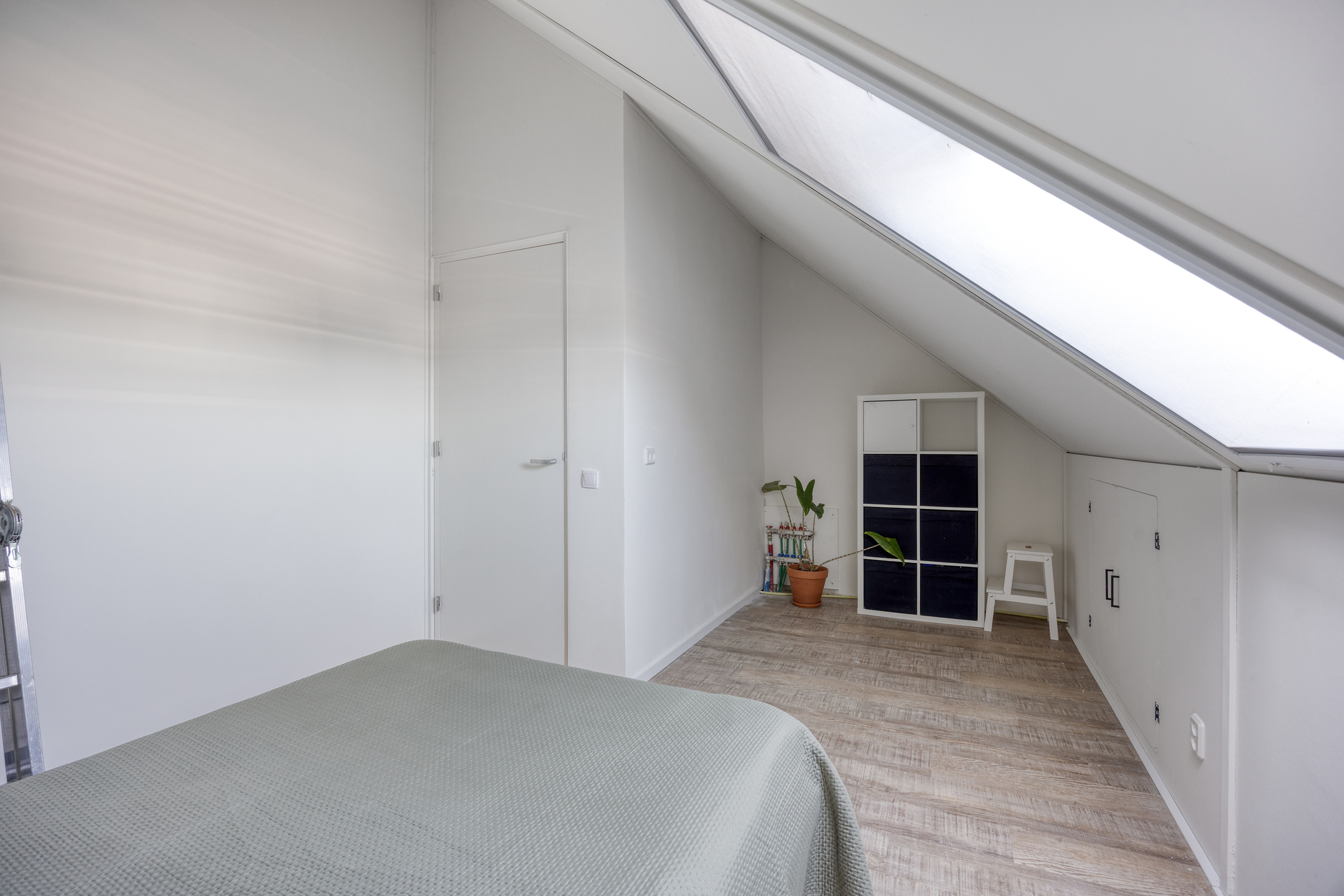Via een vaste trap bereikt u de tweede verdieping. Deze verdieping bestaat uit een ruime zolder en een extra slaapkamer. De slaapkamer is, ondanks de schuine wanden, verrassend ruim en goed bruikbaar. Op de overloop vindt u de witgoedaansluitingen. Deze verdieping biedt u volop mogelijkheden, bijvoorbeeld als extra slaap-, werk- of hobbyruimte.