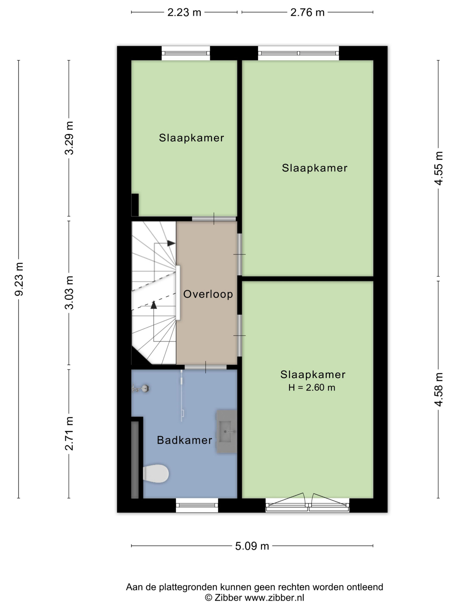 Via the fixed staircase in the hallway, you reach the first floor. Here you will find three bedrooms and the bathroom, all practically arranged around the landing.