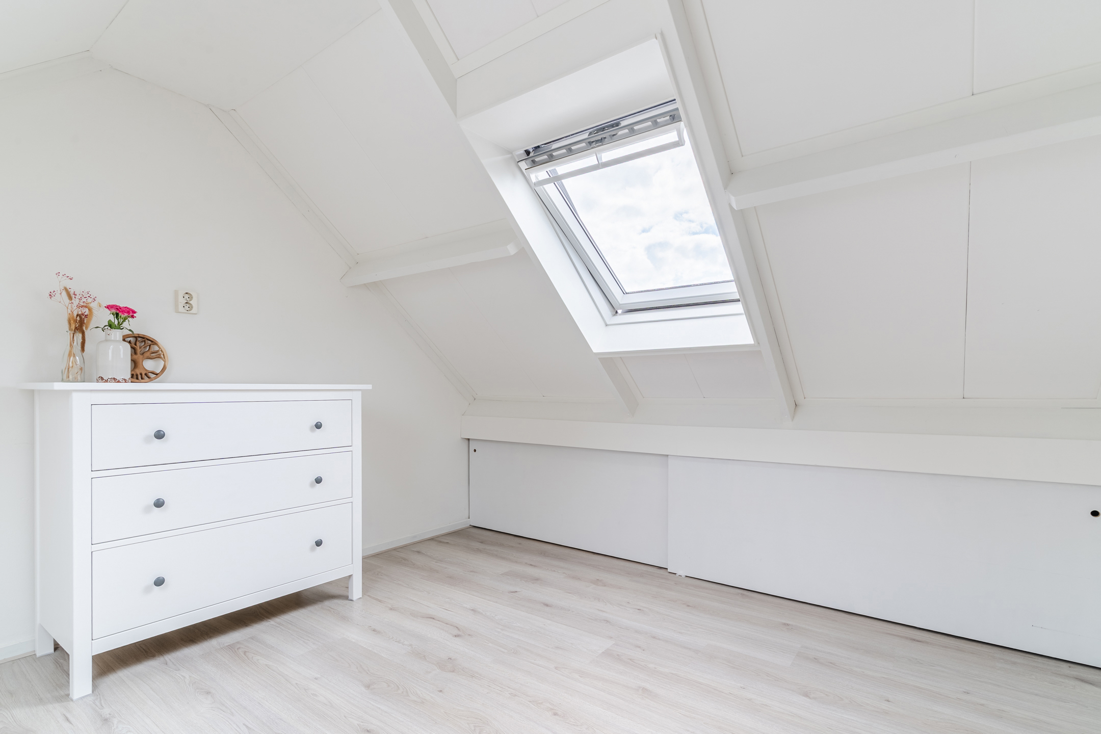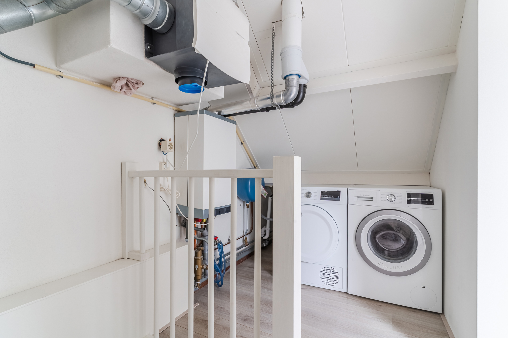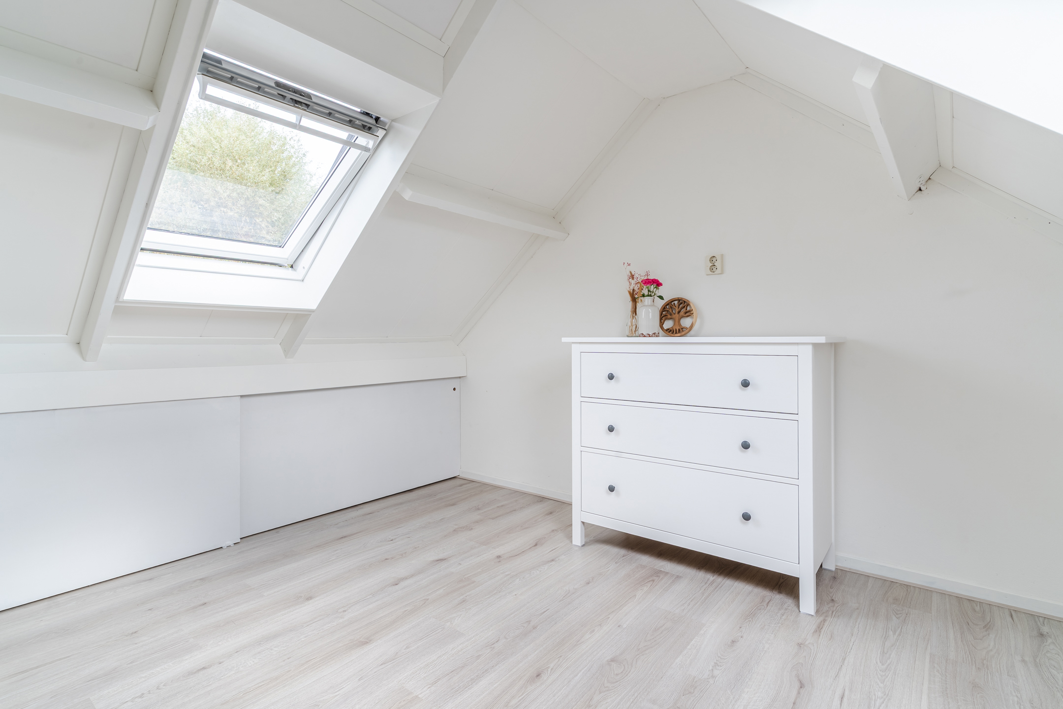 Er is een vaste trap naar de ruime tweede verdieping met overloop en 4e slaapkamer. Deze etage is vorig jaar gerenoveerd en voorzien van 2 Velux dakramen. De aansluitingen voor de witgoedopstelling en de C.V. ketel (2007) bevinden zich op de overloop.