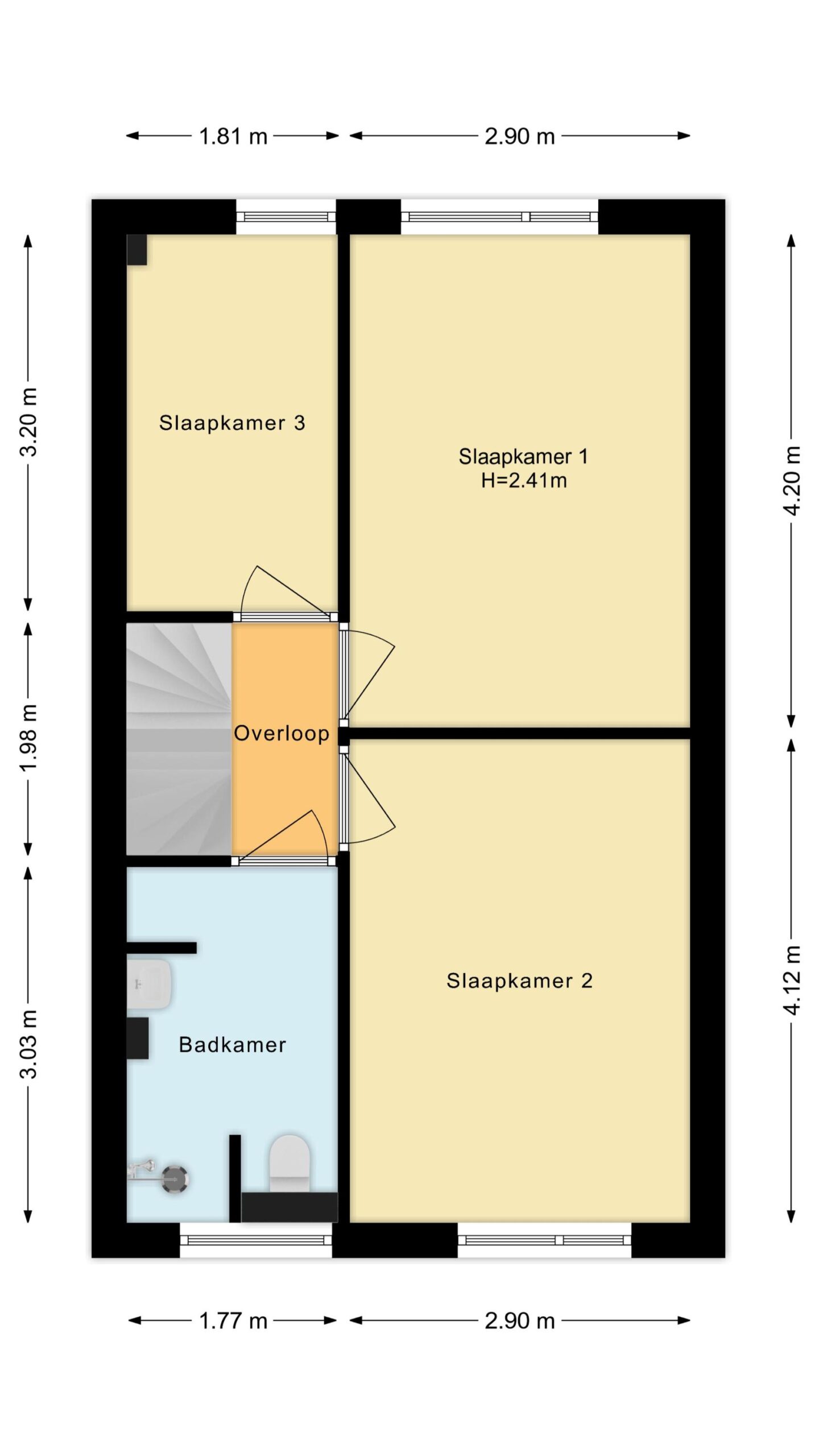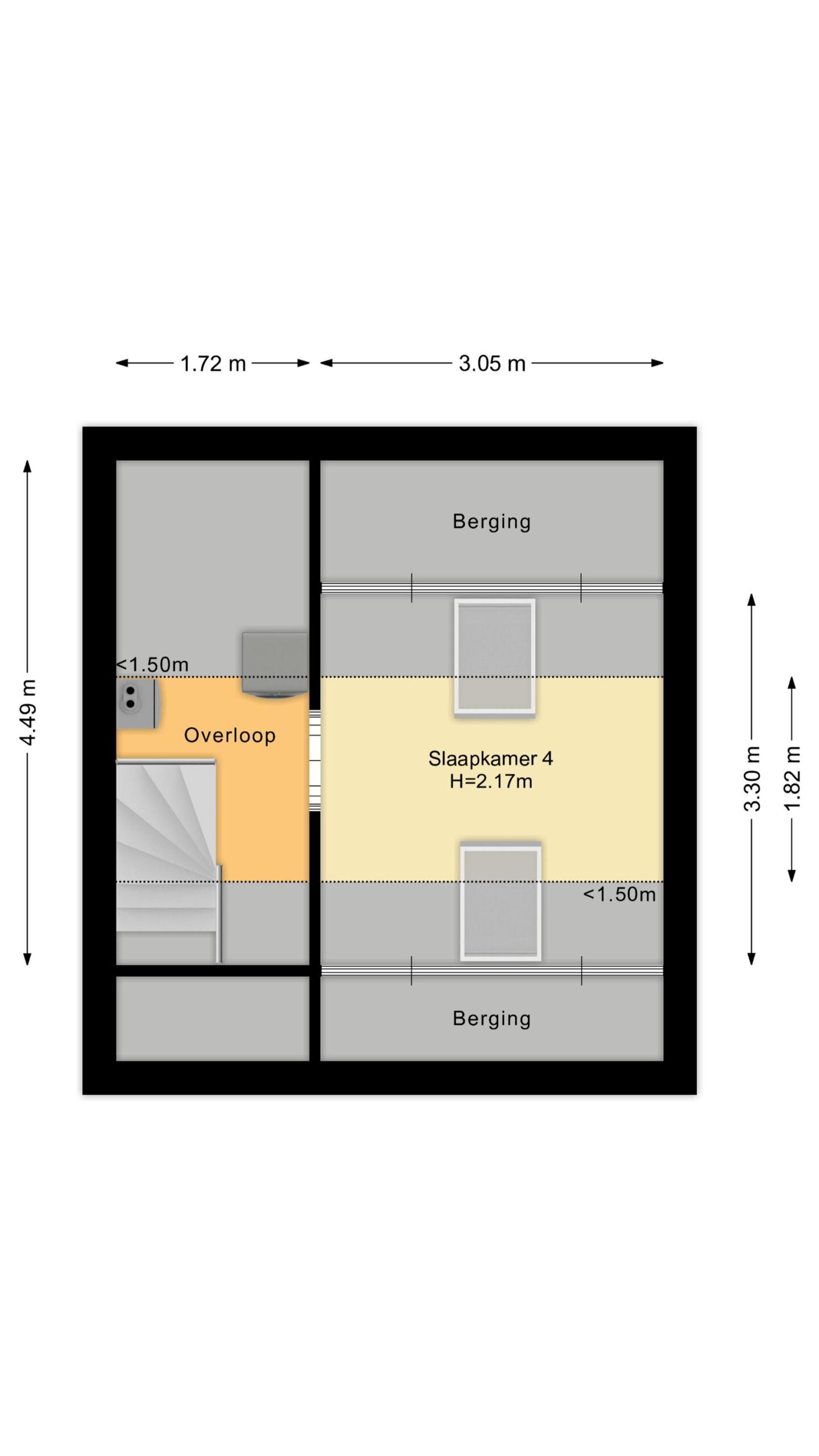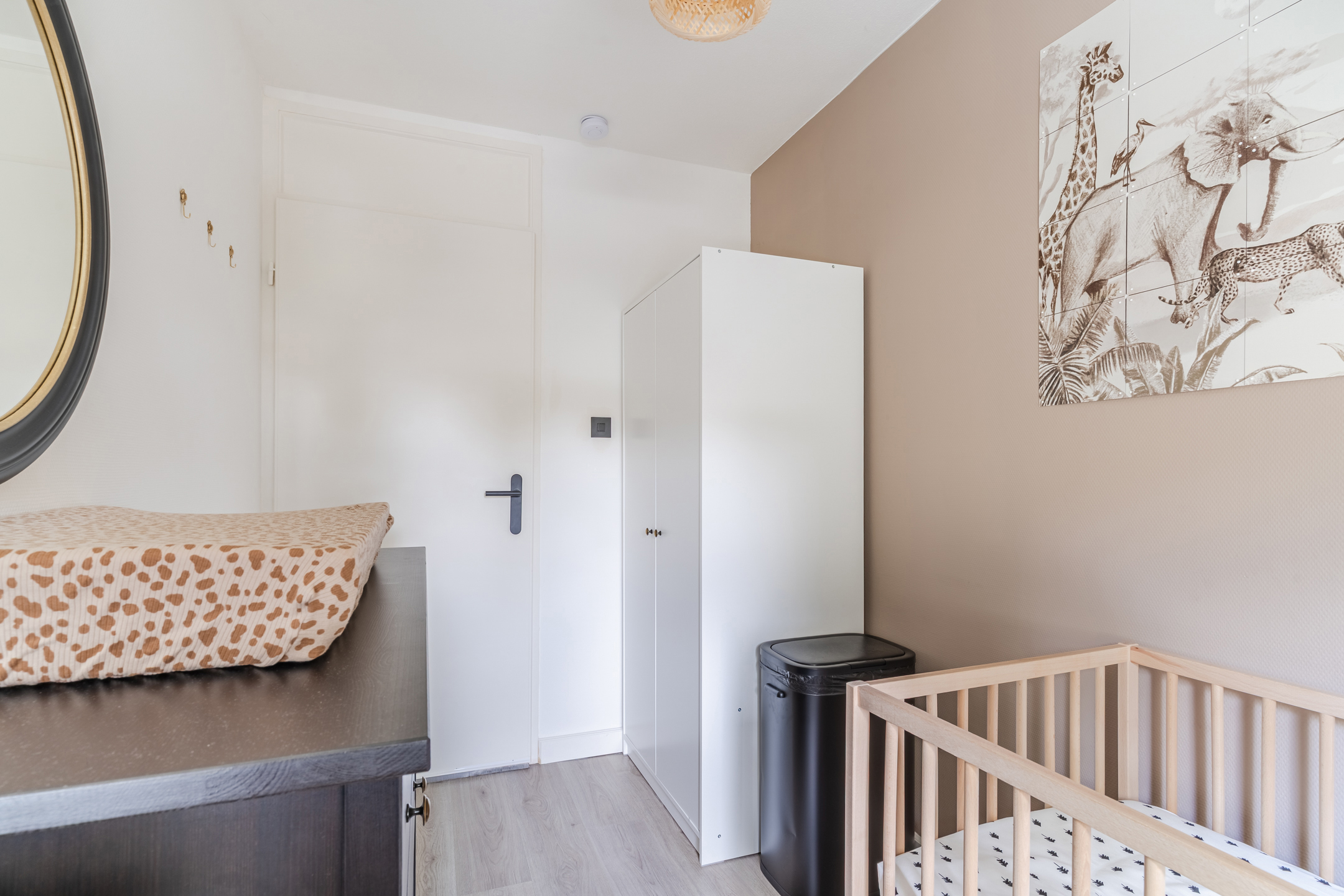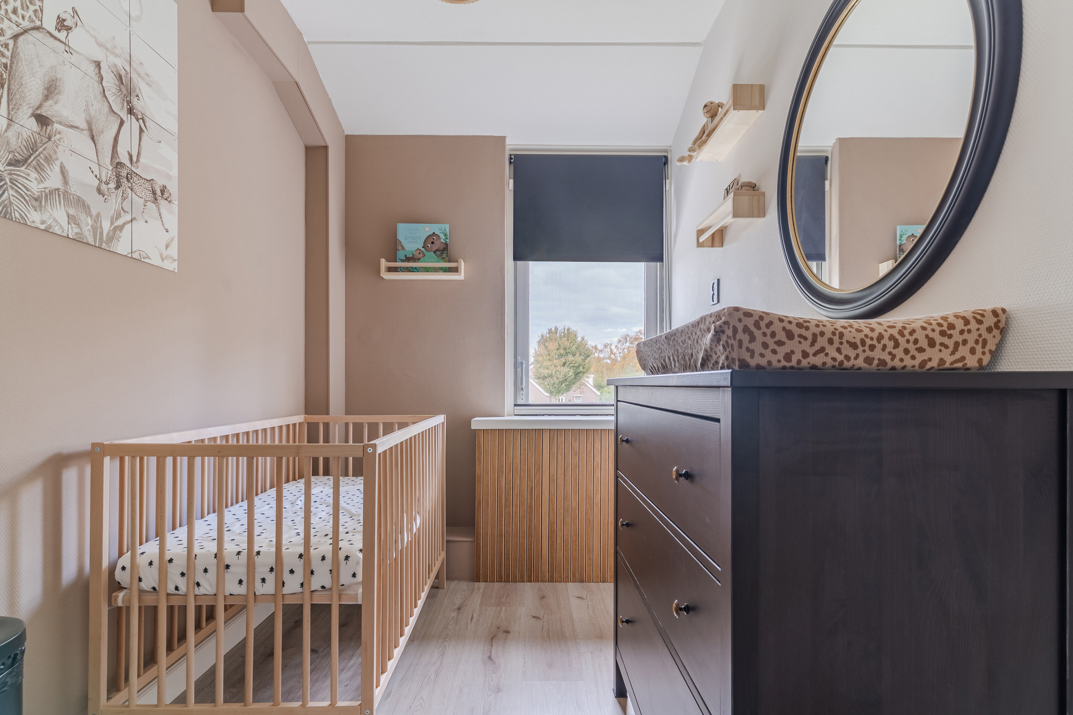 Er is een vaste trap naar de ruime tweede verdieping met overloop en 4e slaapkamer. Deze etage is vorig jaar gerenoveerd en voorzien van 2 Velux dakramen. De aansluitingen voor de witgoedopstelling en de C.V. ketel (2007) bevinden zich op de overloop.