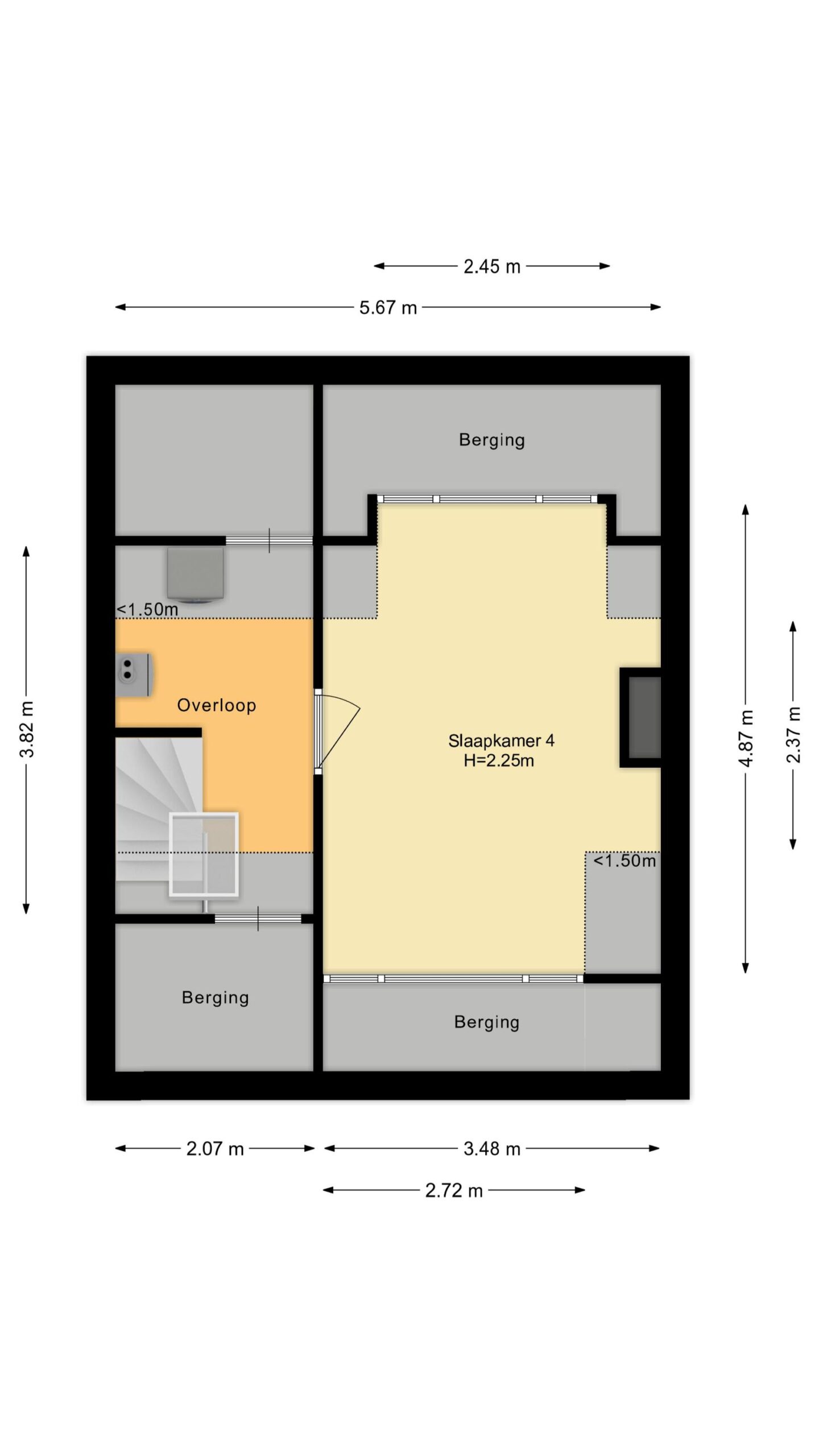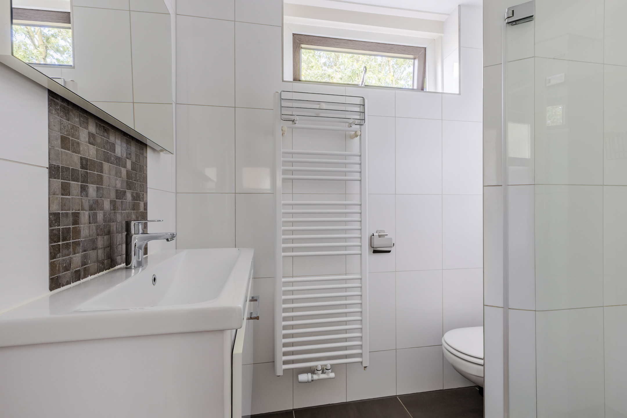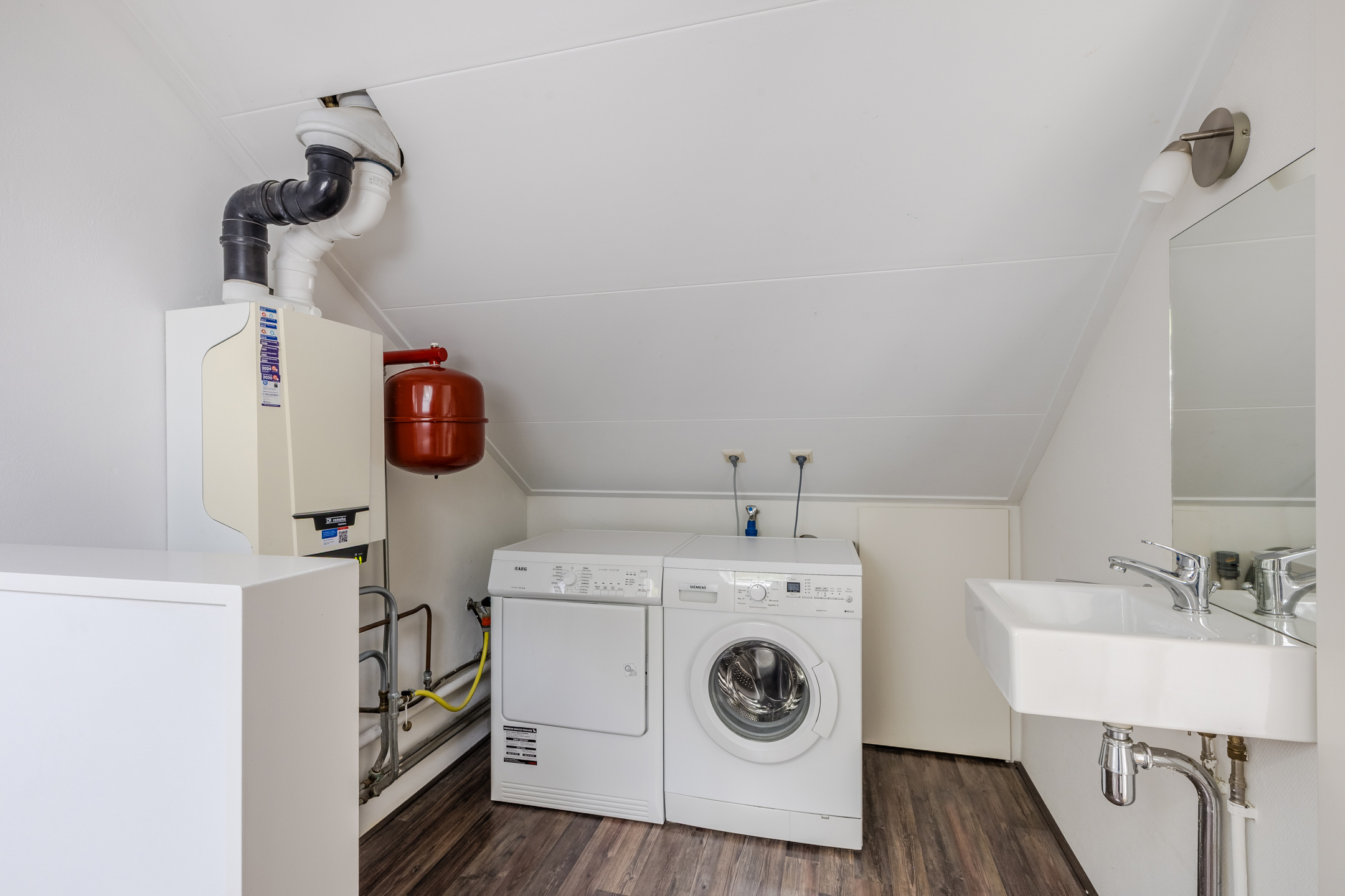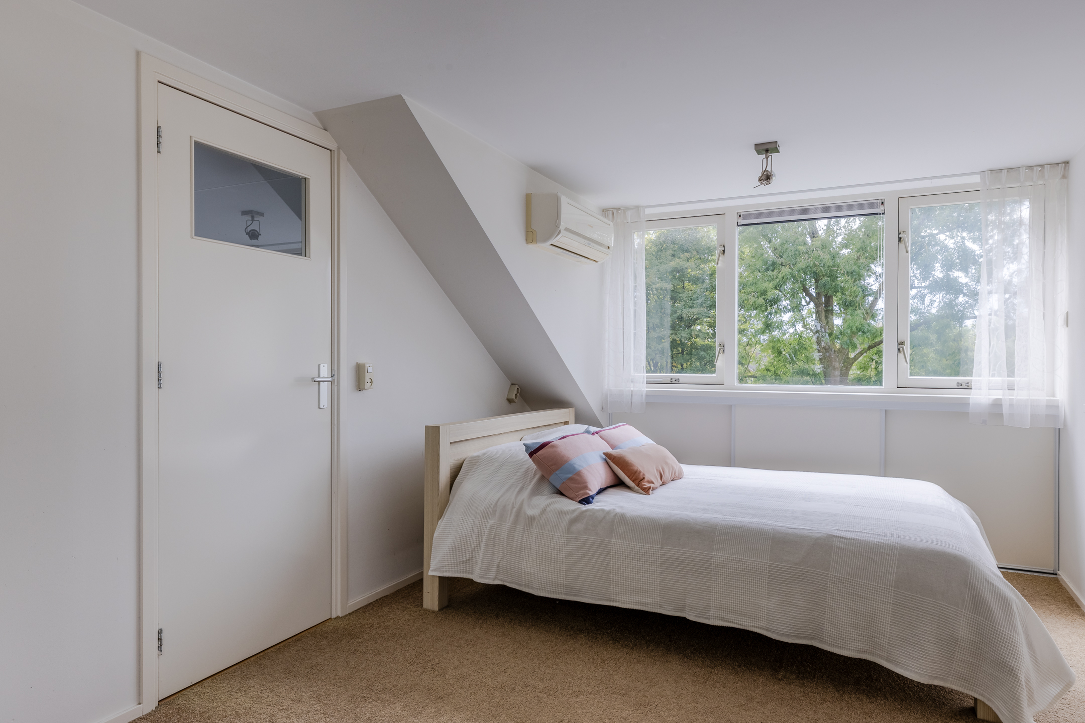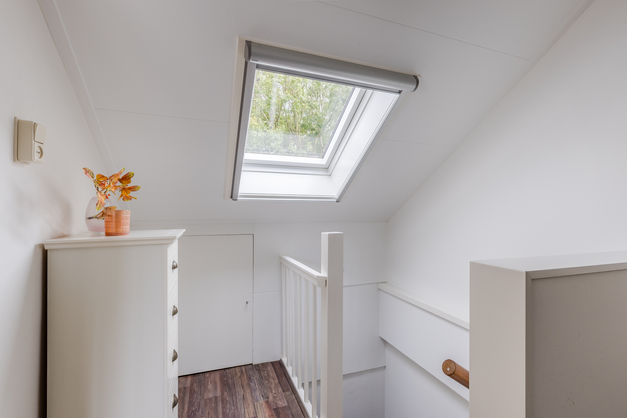 Via een vaste trap bereiken we de overloop van de tweede verdieping welke toegang biedt tot de volwaardige 4e slaapkamer. Door de toevoeging van 2 grote dakkapellen, is ook deze kamer heerlijk zonnig en licht. Er is hier tevens airconditioning aanwezig en een rolluik voor het raam aan tuinzijde. Onder het schuine dak is veel handige bergruimte achter knieschotten aanwezig en op de overloop bevindt zich de opstelplaats voor de wasmachine en droger met aldaar ook een extra wastafel.