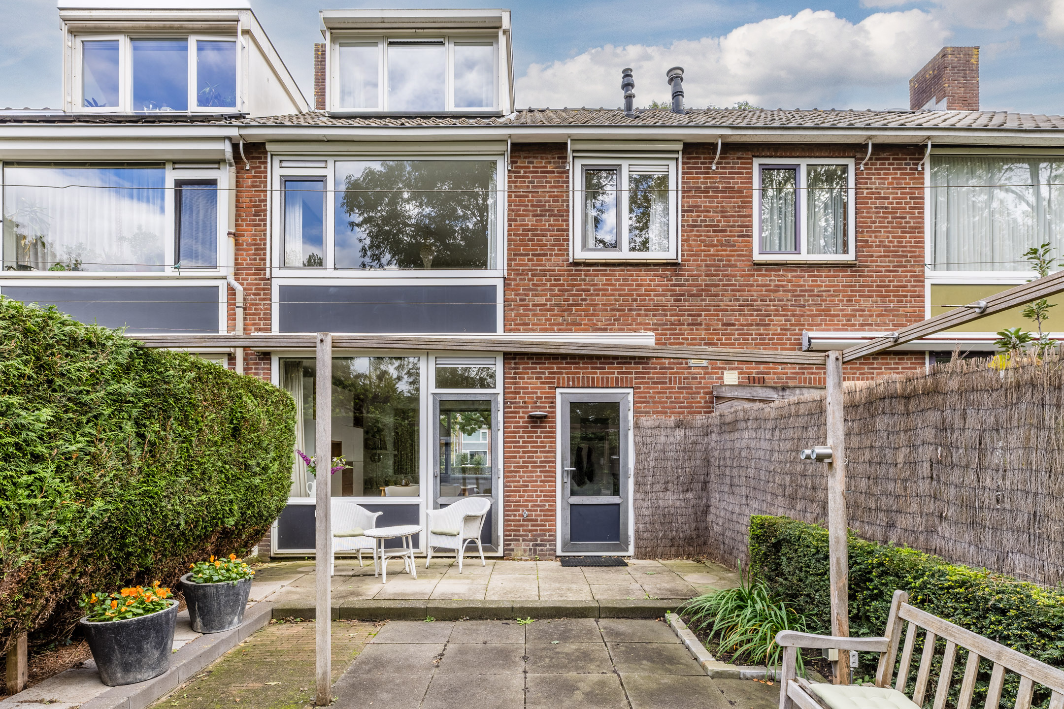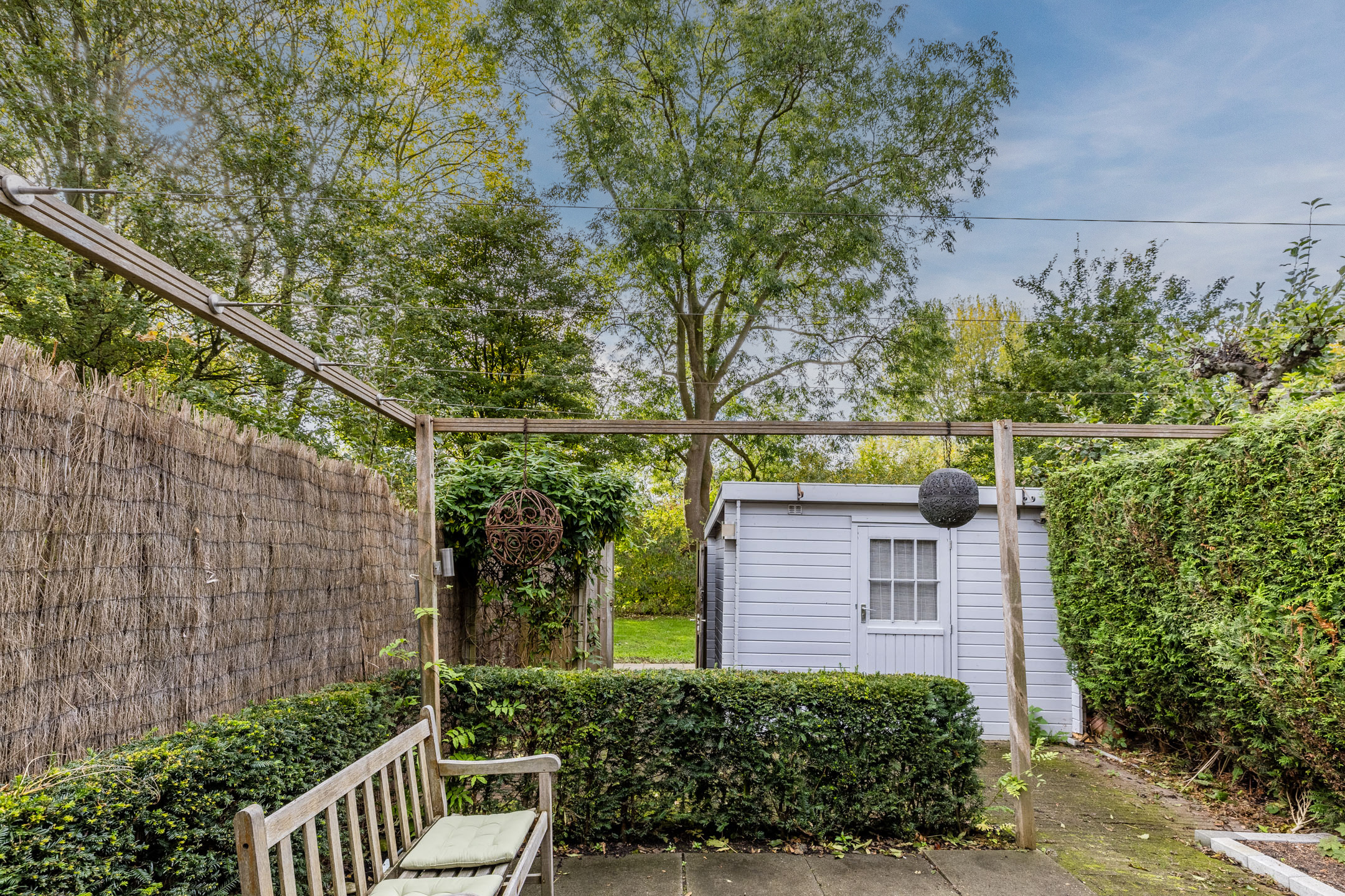 The house has a sunny southwest-facing garden featuring a large paved terrace surrounded by green borders and hedges. There is also a lovely pergola in the garden, and at the back you will find a practical wooden shed equipped with electricity. A water tap is available, as well as a back entrance. Since the garden borders a green area, there are no rear neighbours, allowing you to enjoy peace, privacy and a green environment.