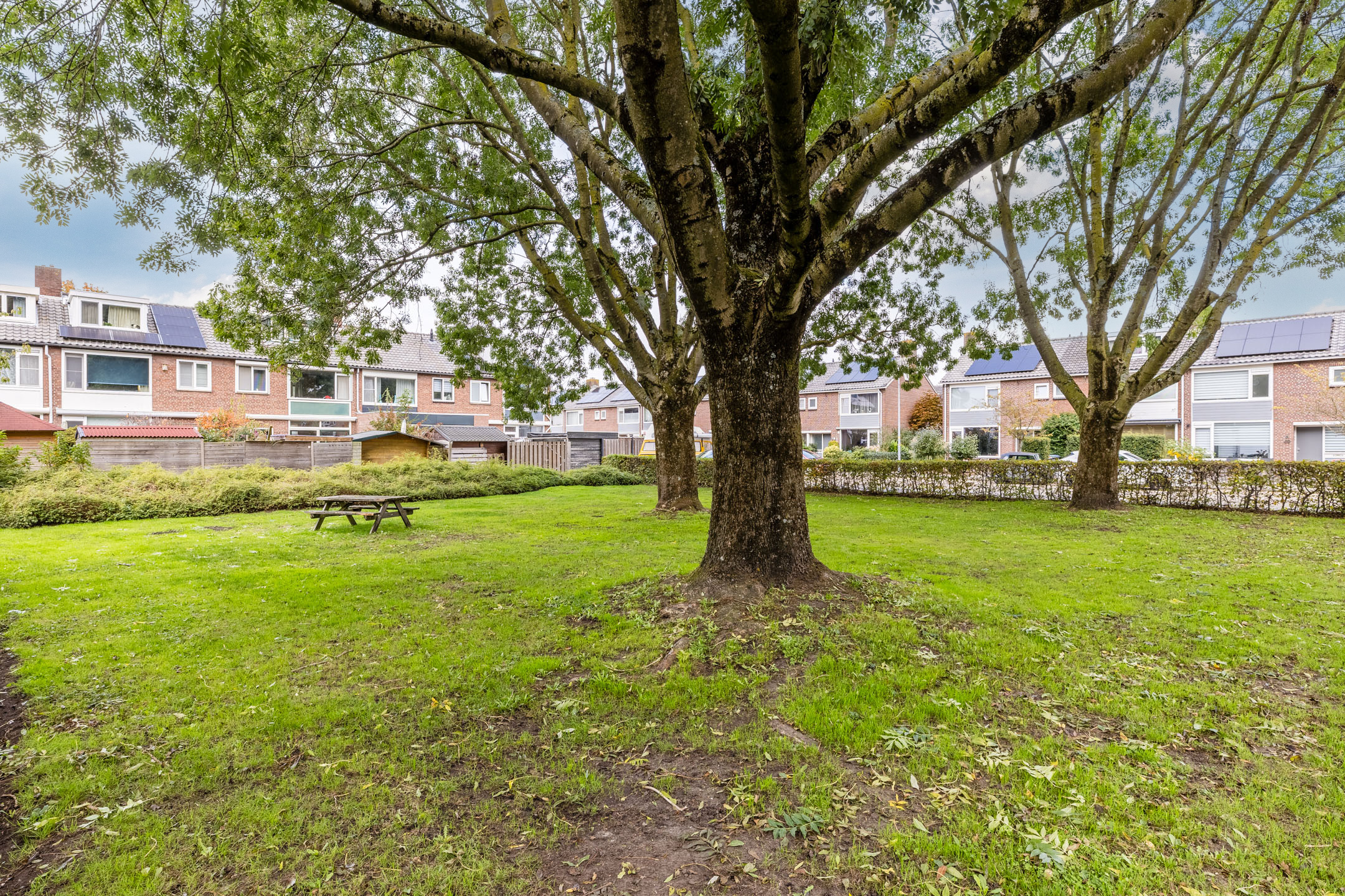 De woning heeft een zonnige tuin op het zuidwesten welke beschikt over een groot betegeld terras dat wordt omlijst door groene borders en hagen. Tevens is er in de tuin een fraaie pergola gerealiseerd en staat er achterin de tuin een handige houten berging welke voorzien is van elektriciteit. Een buitenkraan is aanwezig, een tuindeur āachteromā eveneens. Omdat de tuin grenst aan een groenstrook, zijn er geen achterburen en zit je buiten heerlijk rustig, privĆ© en omringd door groen.