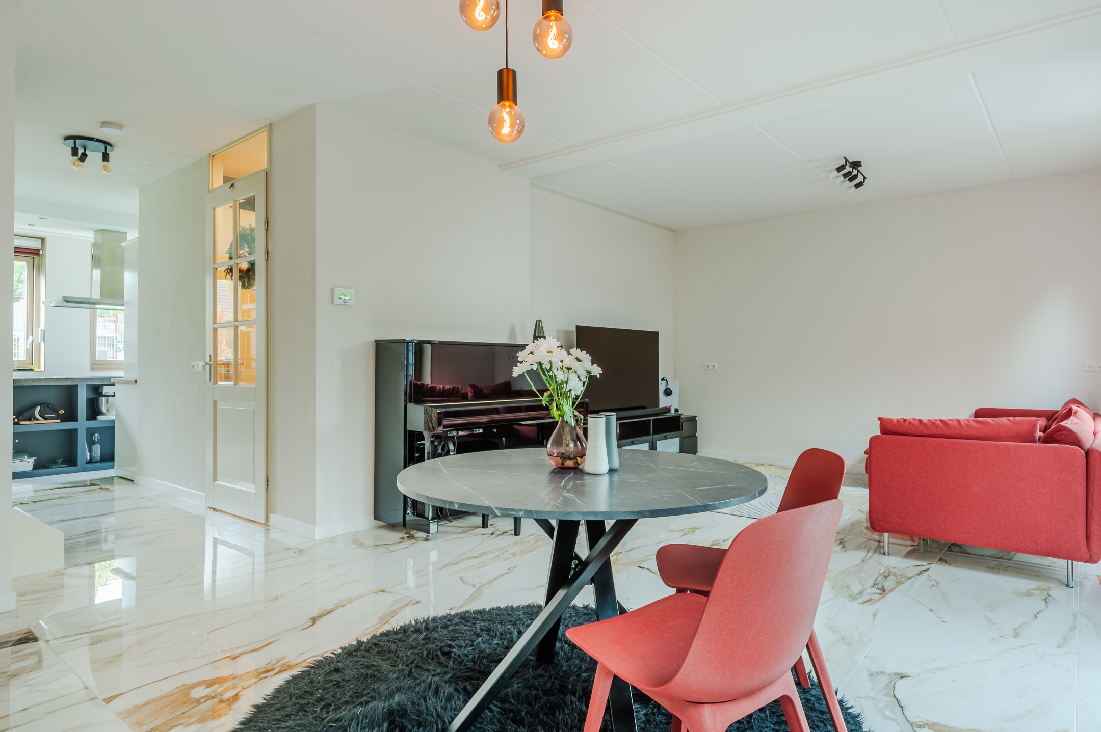 De lichte woonkamer is tuingericht en maar liefst 7,29 meter breed. 3 grote ramen laten een prettige hoeveelheid lichtinval naar binnen en kunnen ook allemaal als deur naar de tuin gebruikt worden.