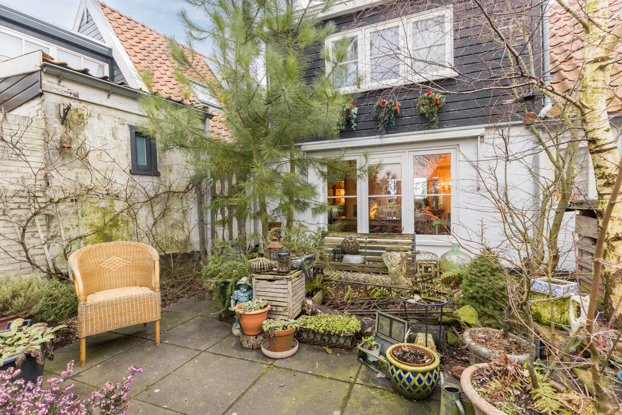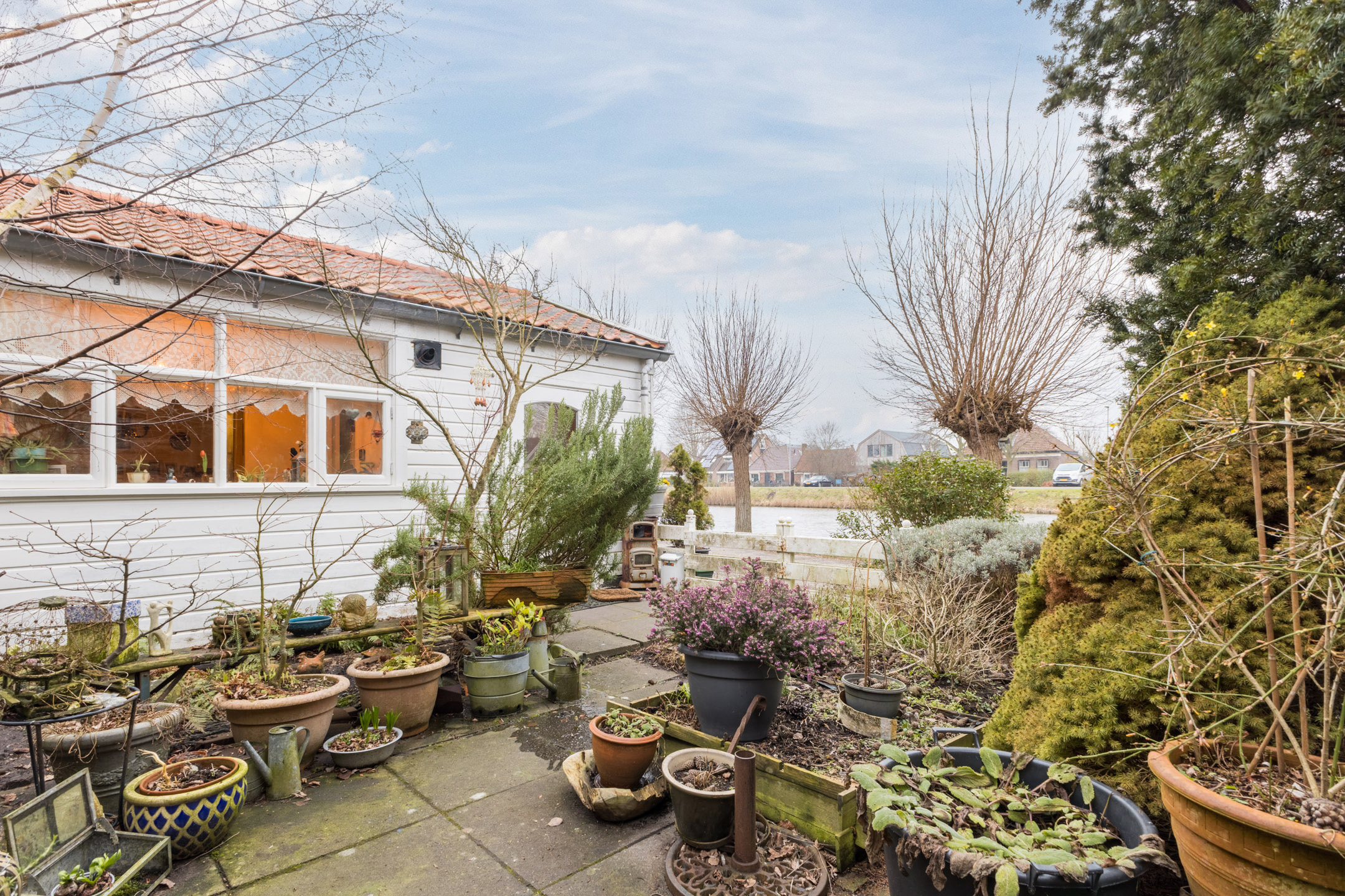 De woning heeft een gezellige tuin op het westen met een betegeld terras dat wordt omringd door groene borders. Vanuit de tuin is er fraai uitzicht over het Noord-Hollands Kanaal.