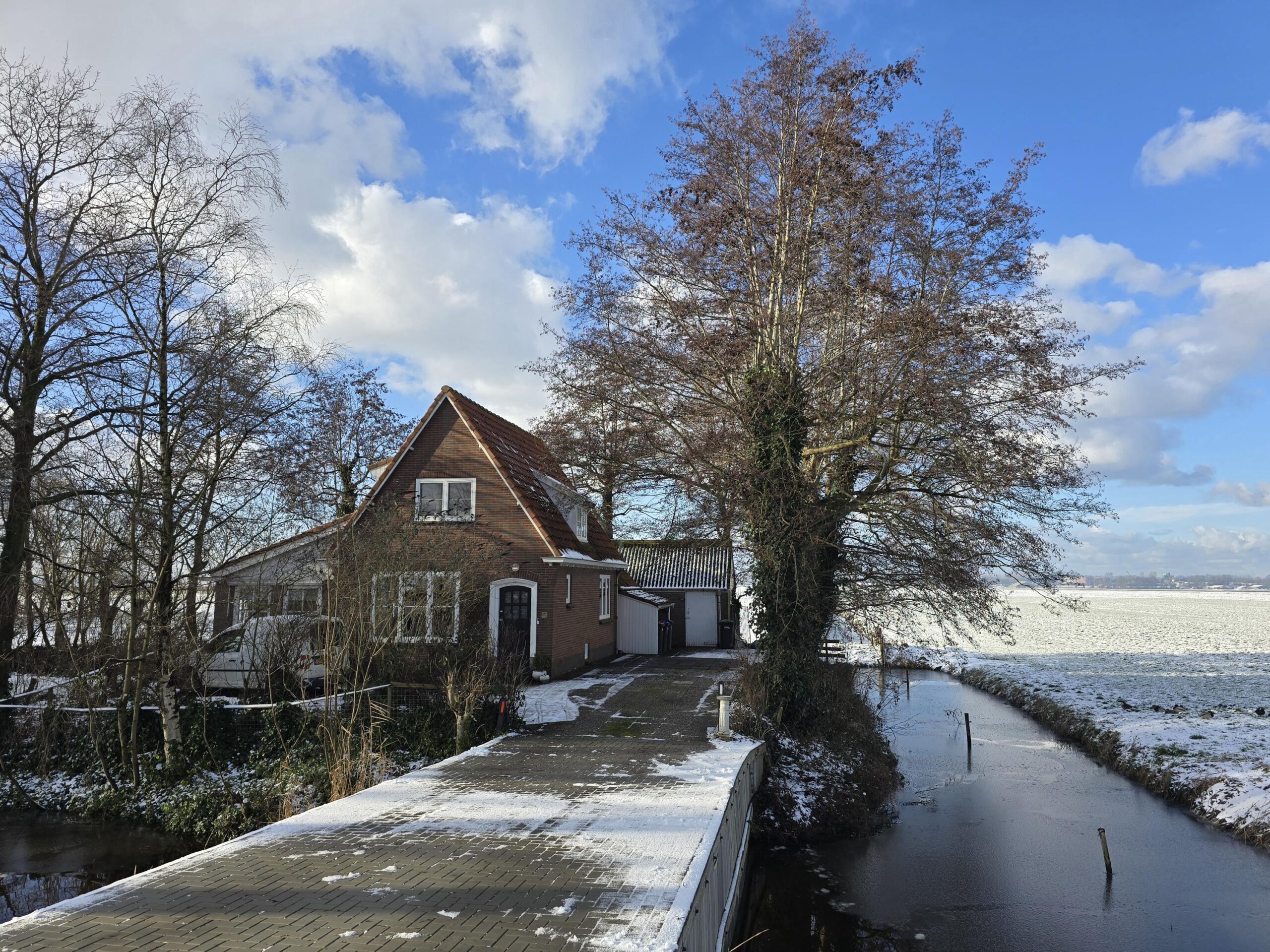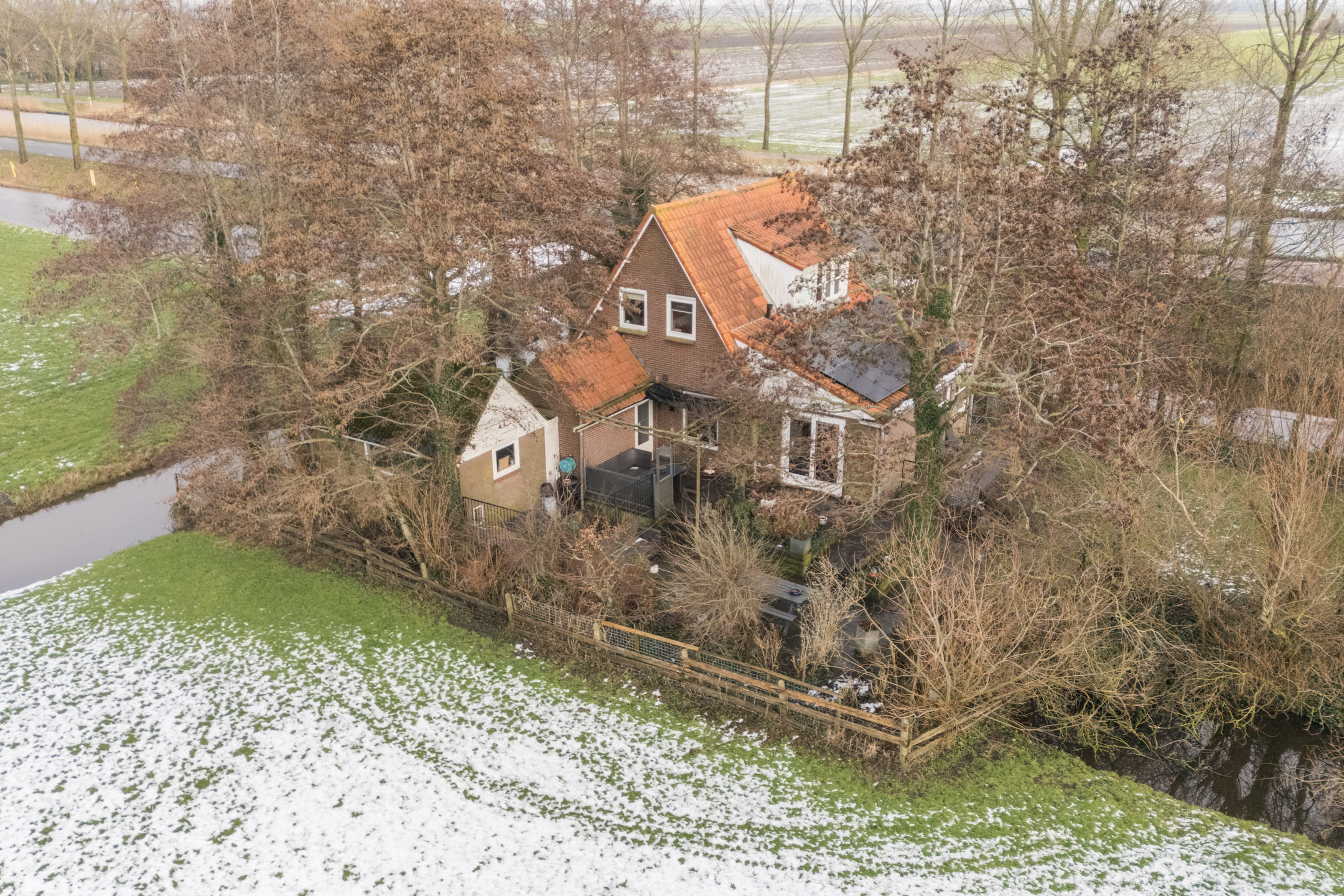 Het geheel is gelegen op een gigantisch perceel met een mooie groene tuin rondom het huis, welke toegankelijk is via de nieuw aangelegde dam (oprijlaan). In het voorjaar lopen de lammetjes als het ware in je 'de achtertuin', nl. in het naastgelegen agrarisch gebied.